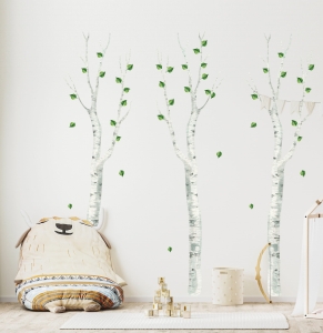 Naklejka na ścianę z motywem brzóz to prosty sposób na stworzenie spokojnego, naturalnego klimatu w pokoju dziecka.