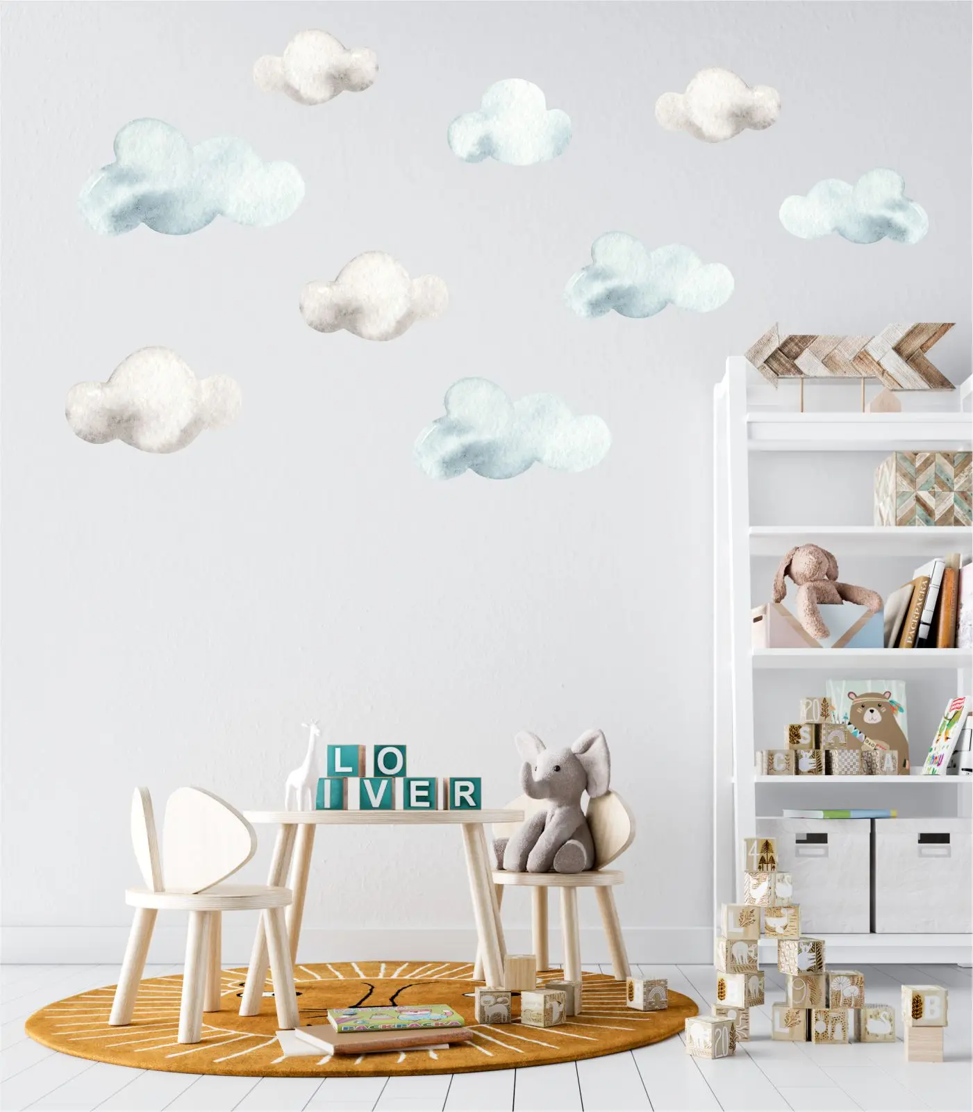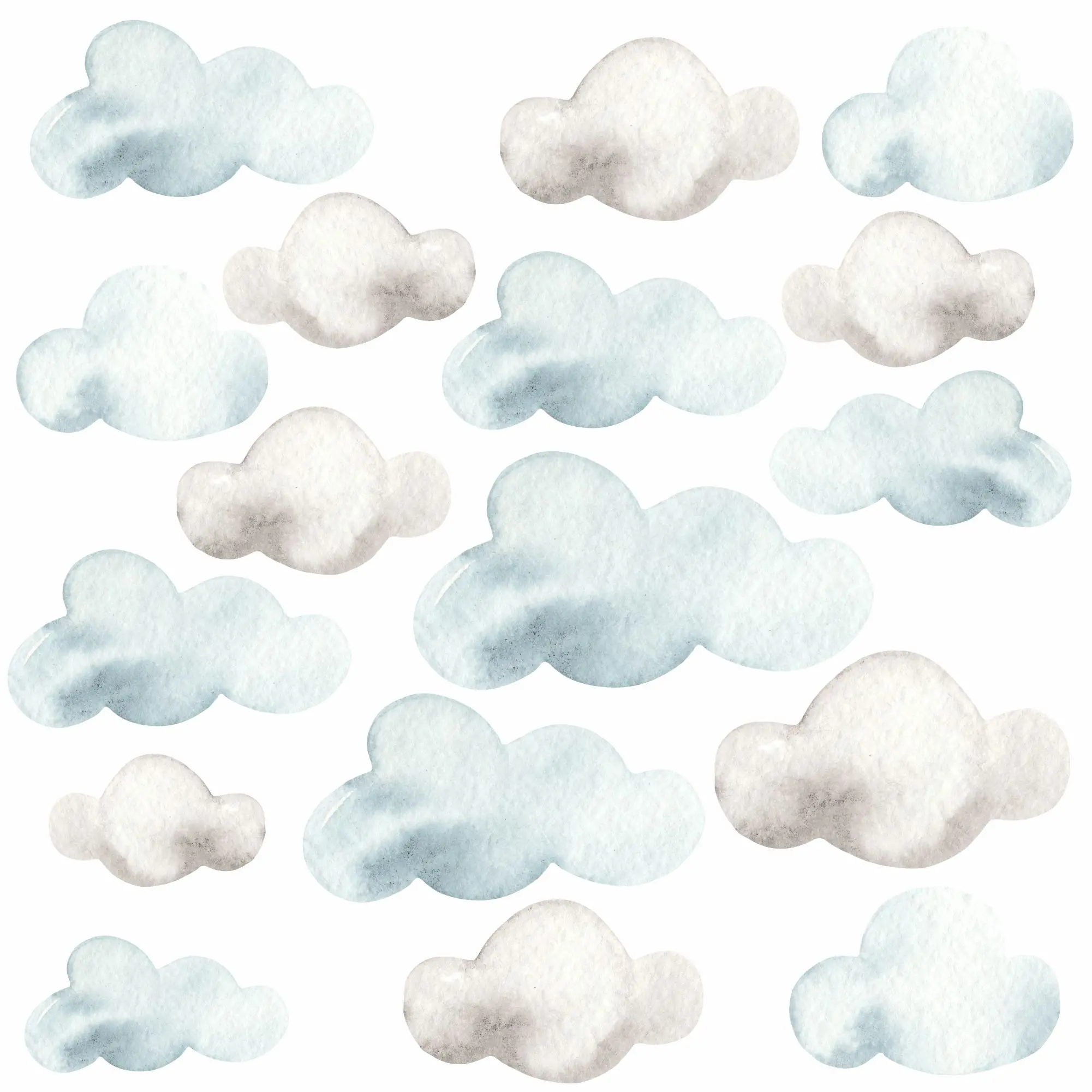 Chmurki akwarelowe – Błękitno-szare | Naklejka na ścianę dla dzieci