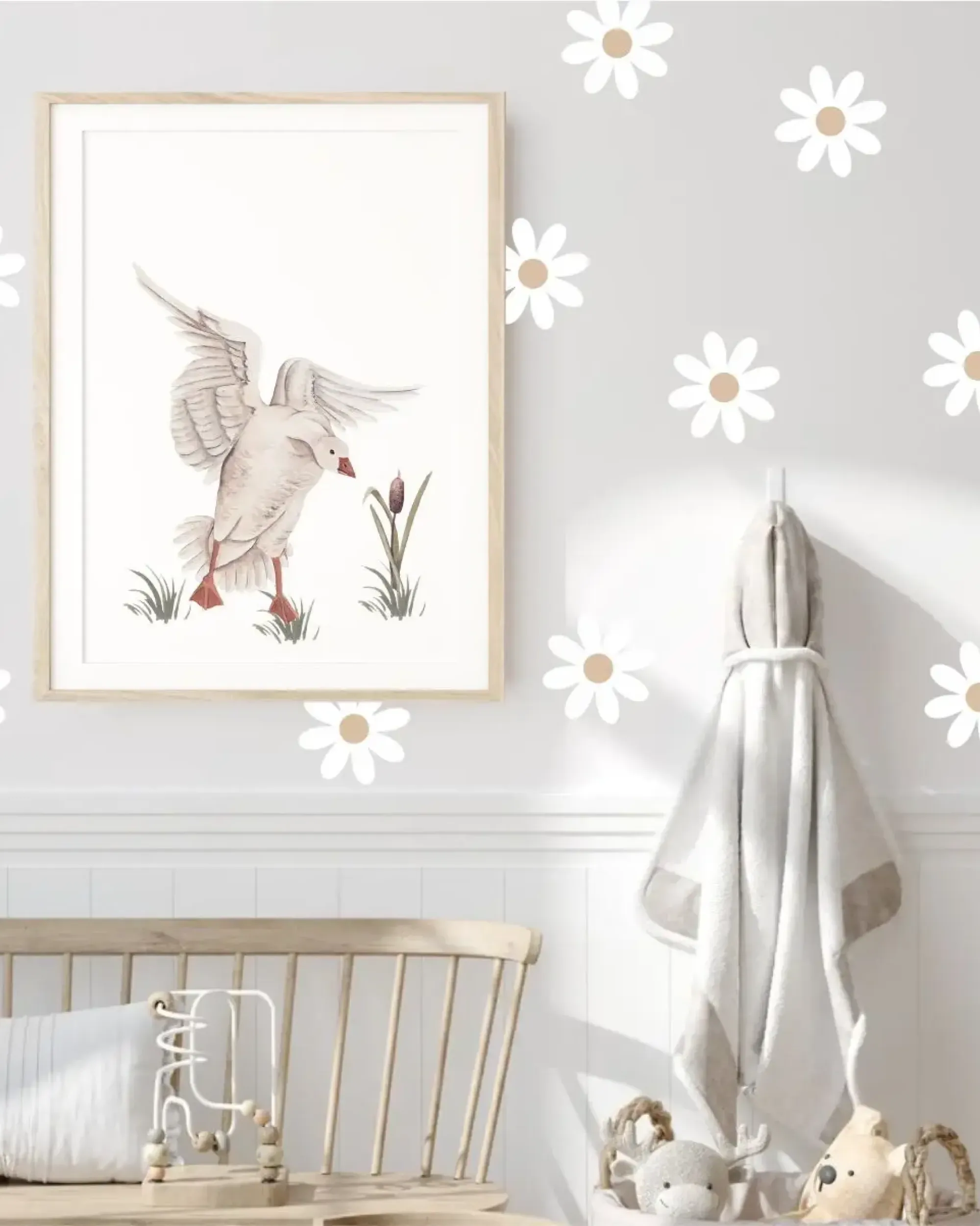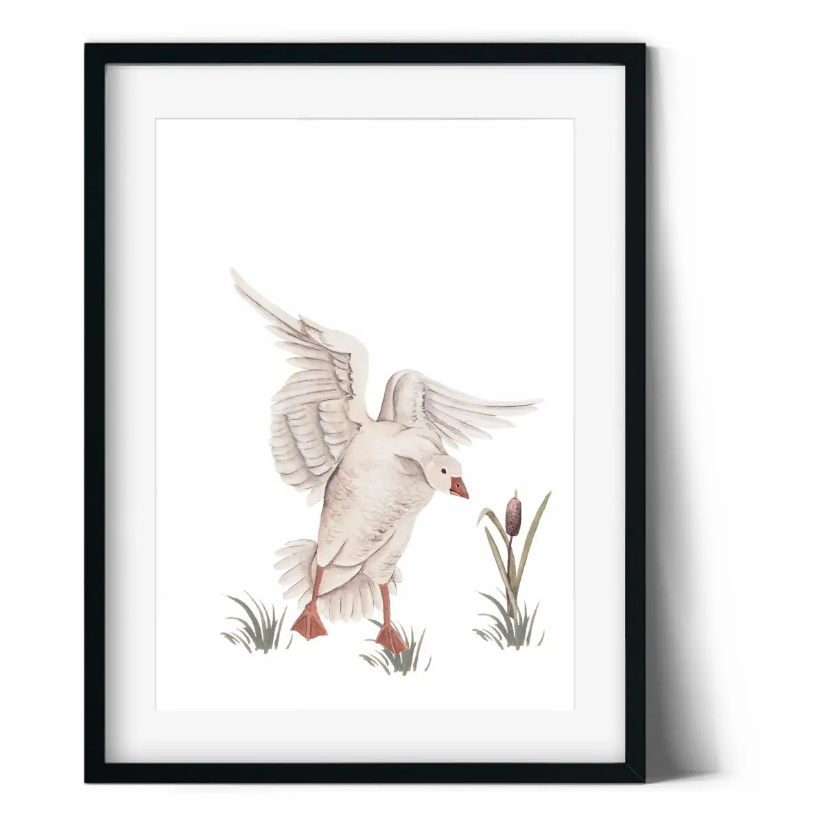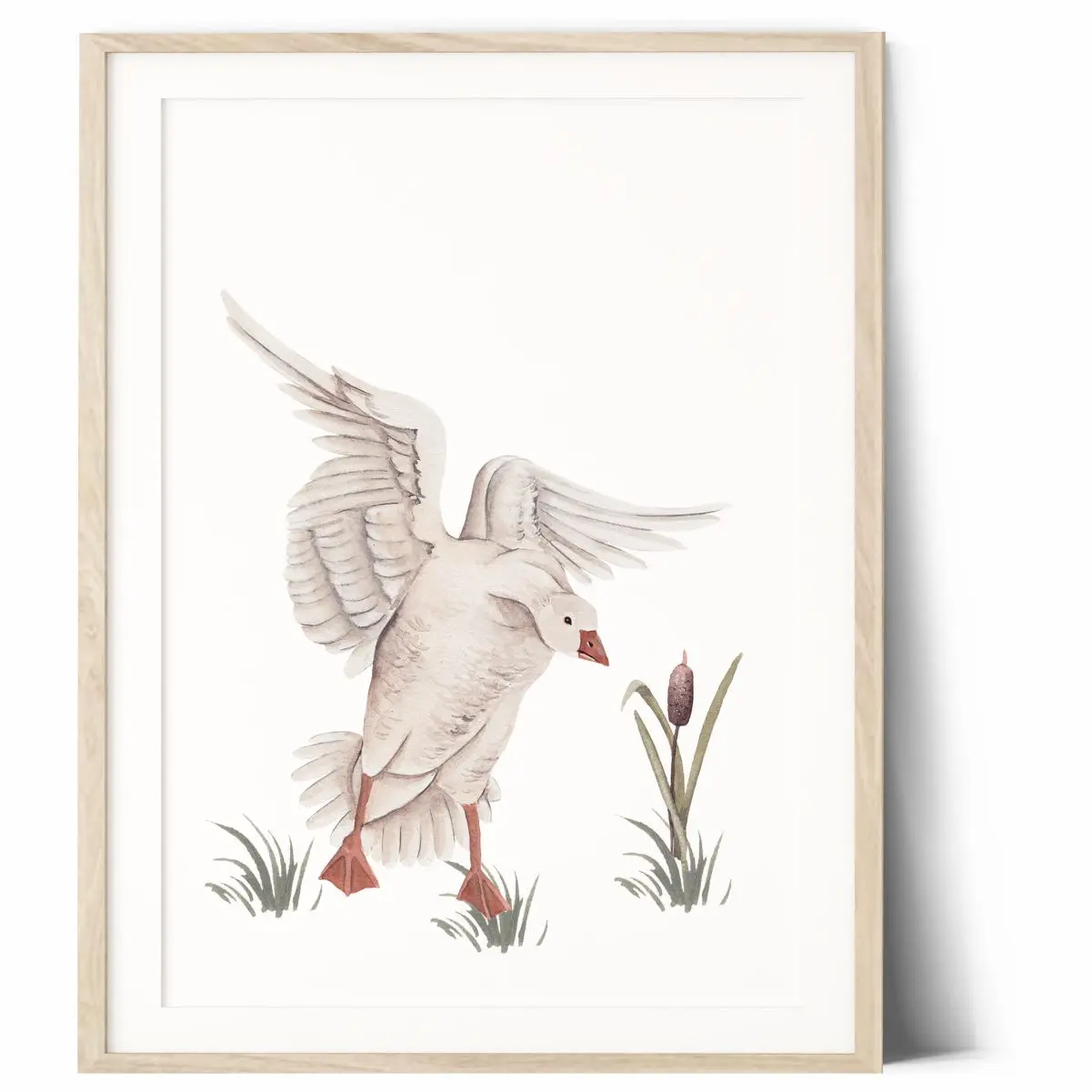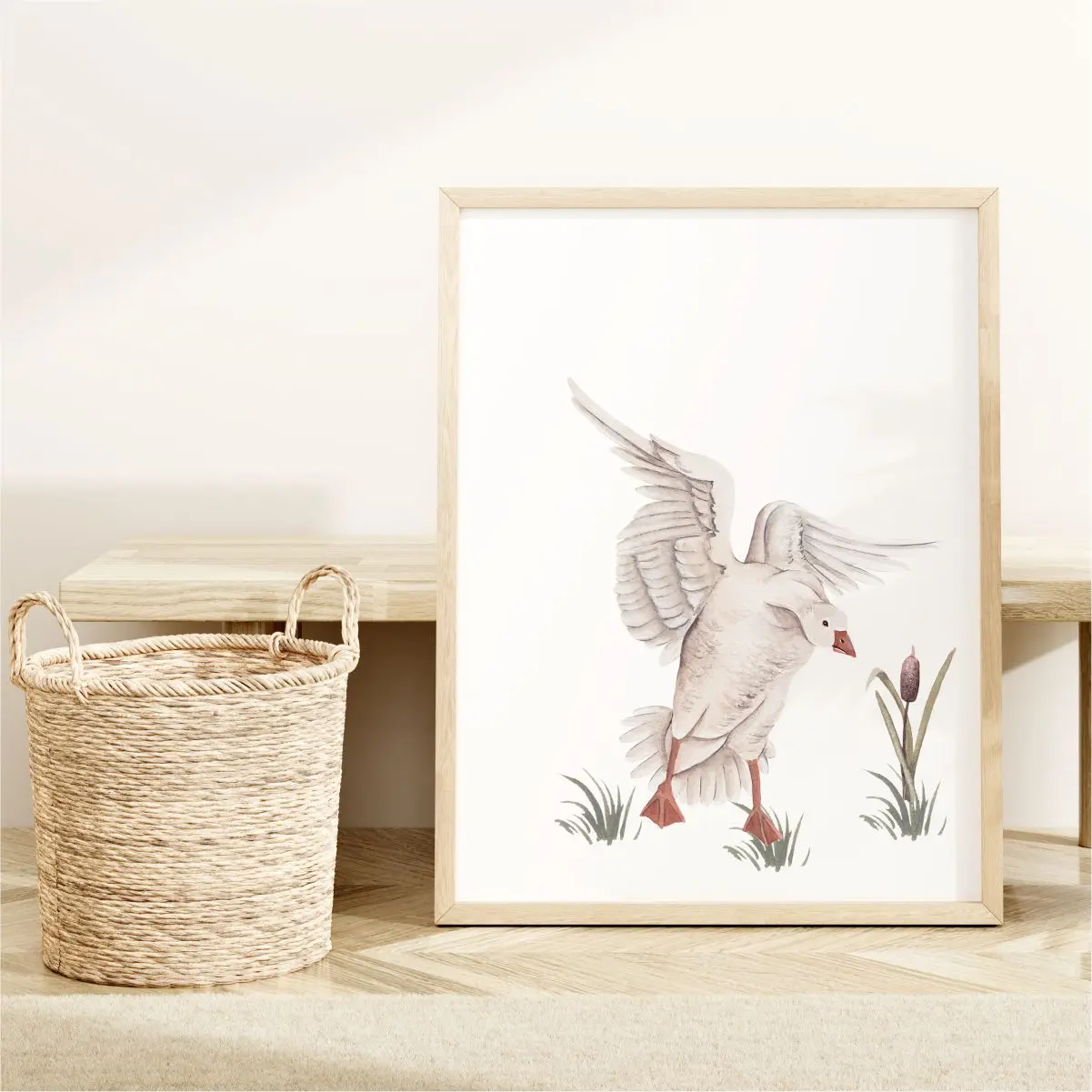 Wprowadź do pokoju dziecka urok letnich dni! Plakat przedstawiający uroczą gąskę to subtelna dekoracja, która doda wnętrzu ciepła, spokoju i naturalnego wdzięku.