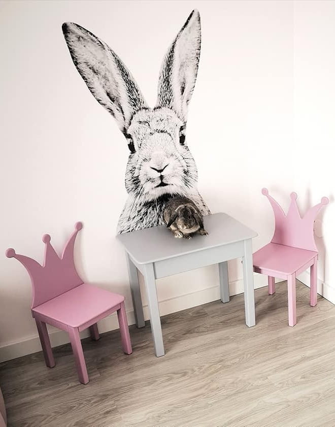 Naklejka na ścianę dla dzieci Królik w fioletowych okularach to świeża, subtelna ozdoba, która wnosi do pokoju lekkość i spokój. Miętowy odcień pięknie komponuje się z naturalnym drewnem i beżami. Produkt Mała Pracownia wyróżnia się matowym wykończeniem i możliwością dowolnej aranżacji