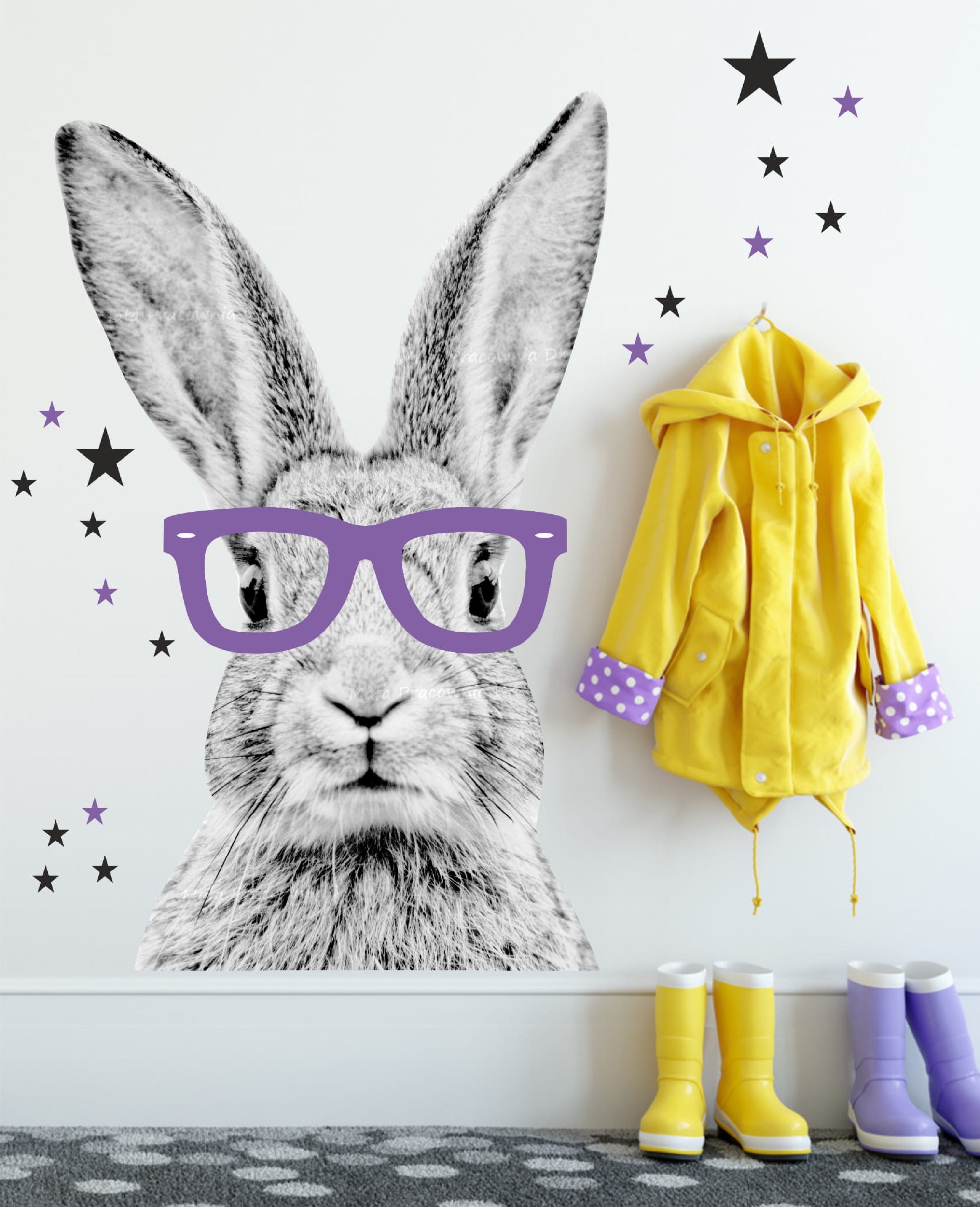 Królik w fioletowych okularach | Naklejka na ścianę dla dzieci