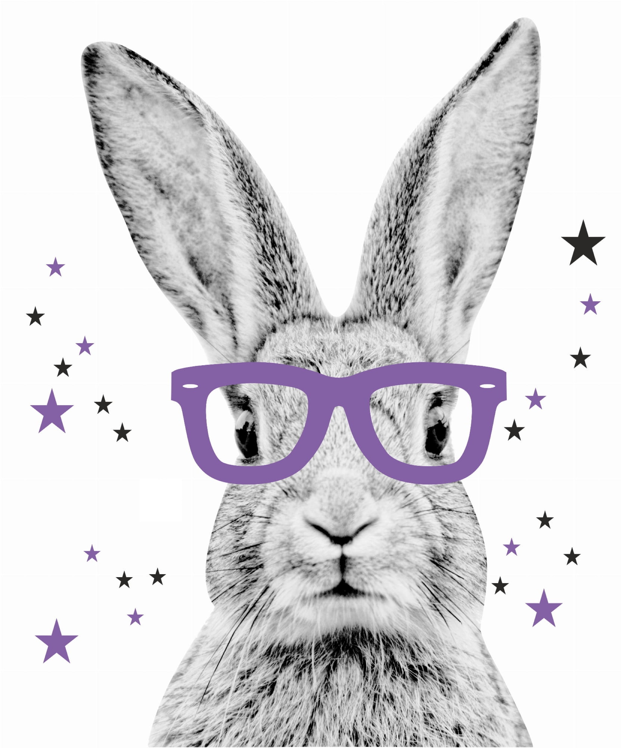 Królik w fioletowych okularach| Naklejka na ścianę dla dzieci
