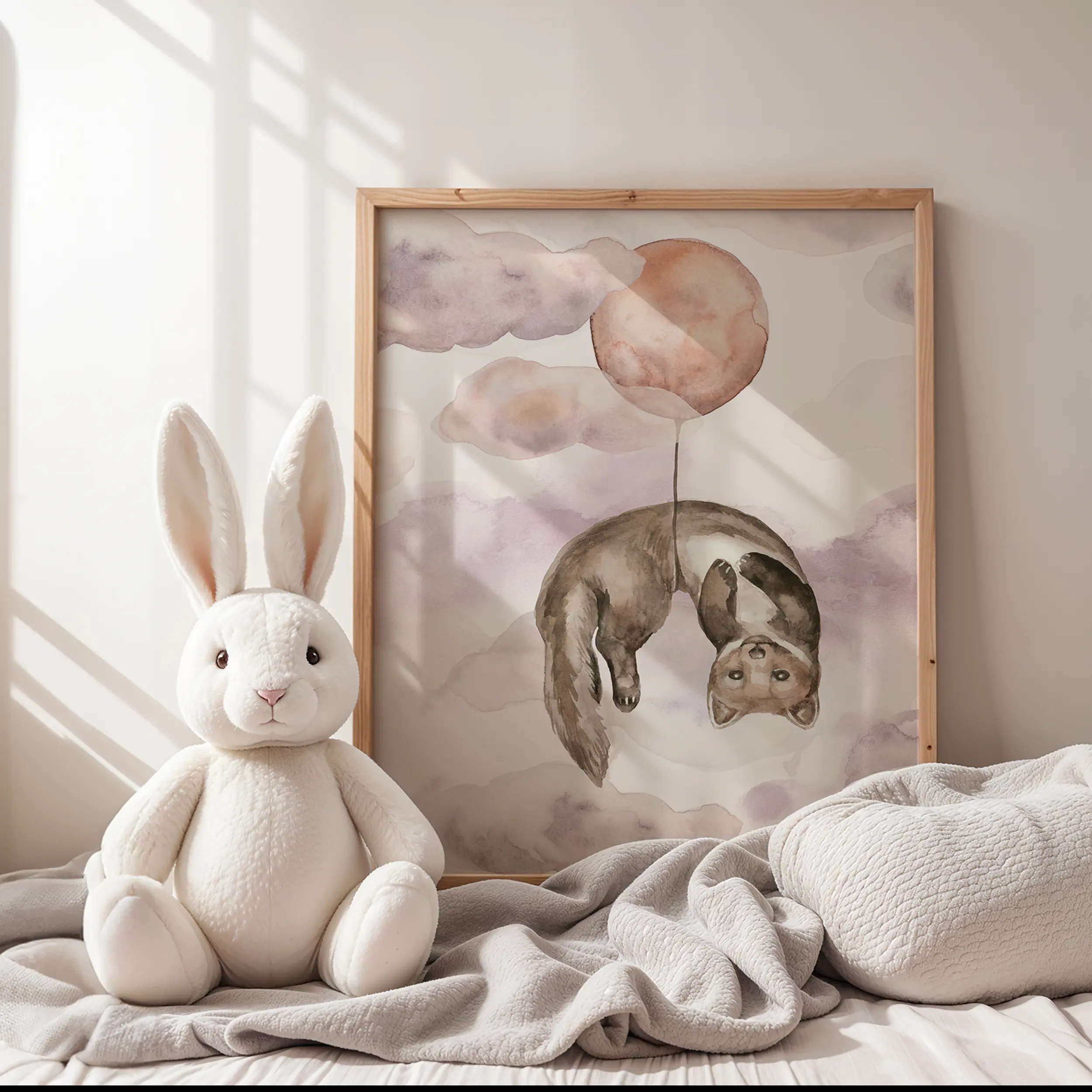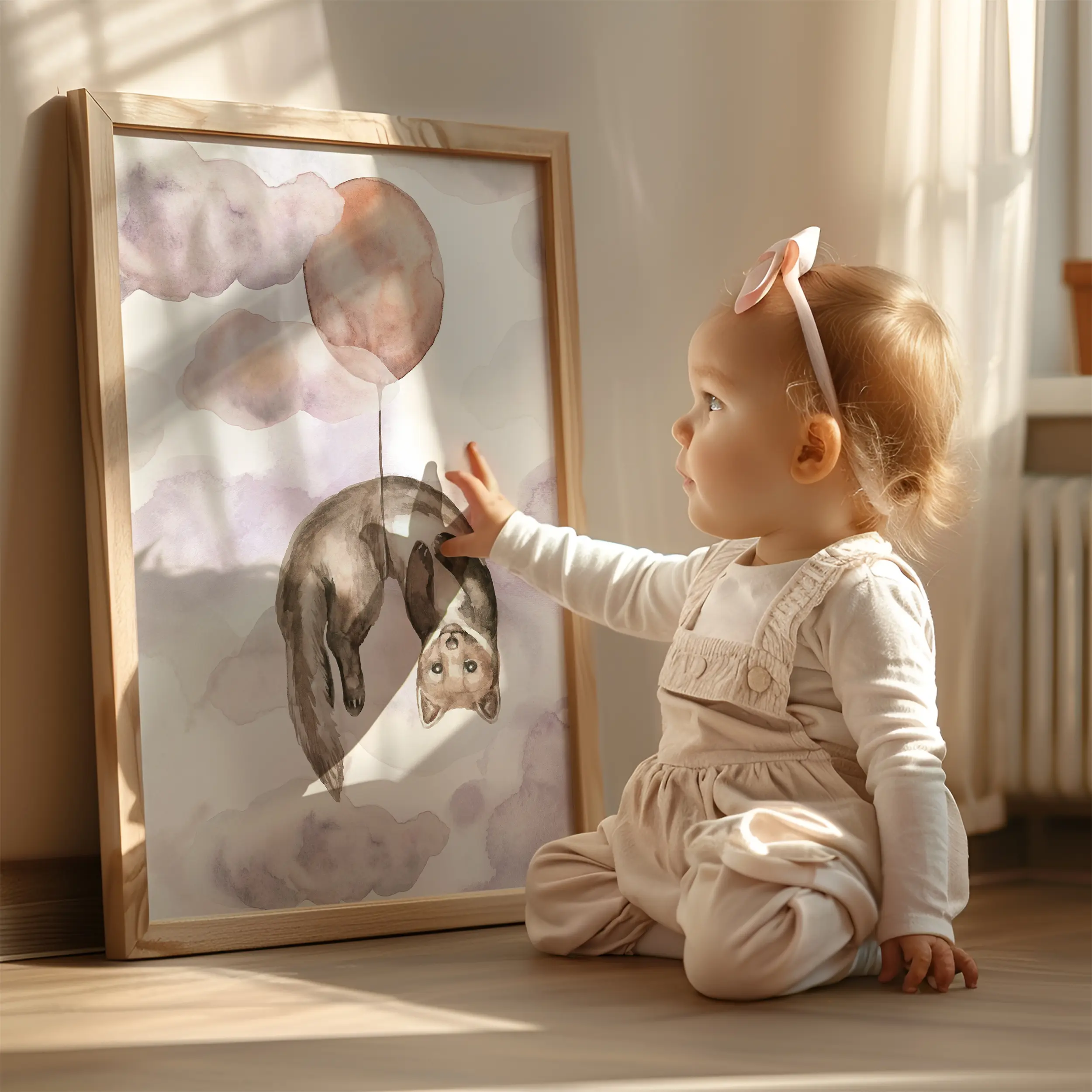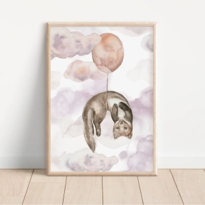 Plakat Kuna z balonikiem wprowadza do wnętrza nutę magii i beztroski. Autorska ilustracja sprawia, że jest to dekoracja naprawdę jedyna w swoim rodzaju.