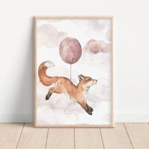 Plakat Lisek i balonik | Happy Flight to subtelny, bajkowy motyw, który przyciąga wzrok i wywołuje uśmiech. Idealny wybór dla tych, którzy szukają wyjątkowej dekoracji do pokoju dziecka.
