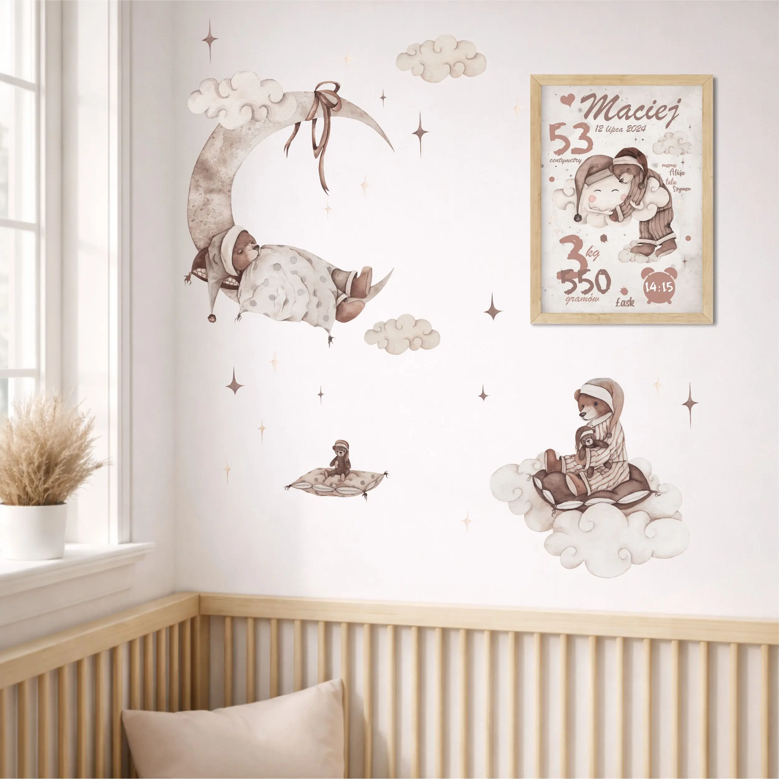 Ten plakat powstał z myślą o chwilach pełnych czułości, spokoju i dziecięcej bliskości. Metryczka Miś z Chmurką pięknie podkreśla wyjątkowość pierwszych dni życia maluszka i tworzy w pokoju atmosferę, w której po prostu chce się być.