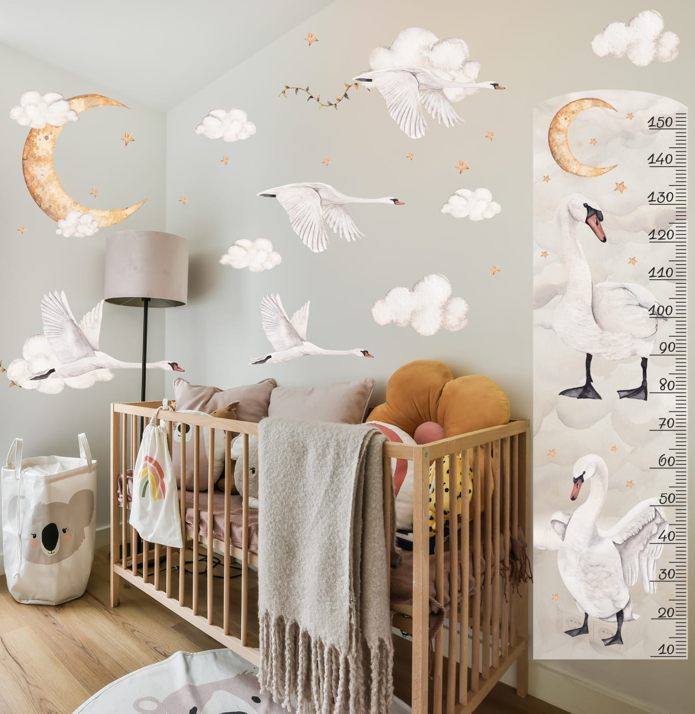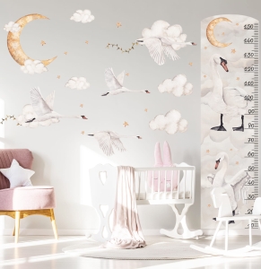 Miarka wzrostu łabędzie i księżyc DK148 | Naklejka na ścianę