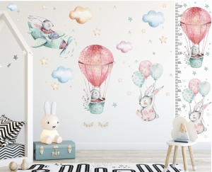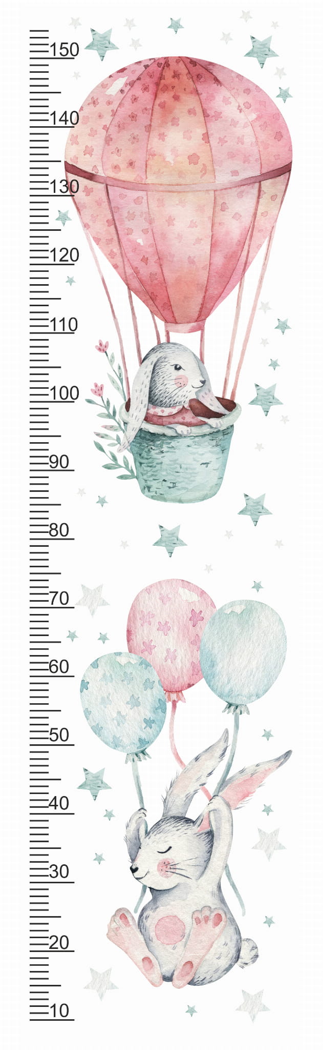 Miarka wzrostu - zajączek w koszyku, gwiazdki | Naklejka na ścianę dla dzieci