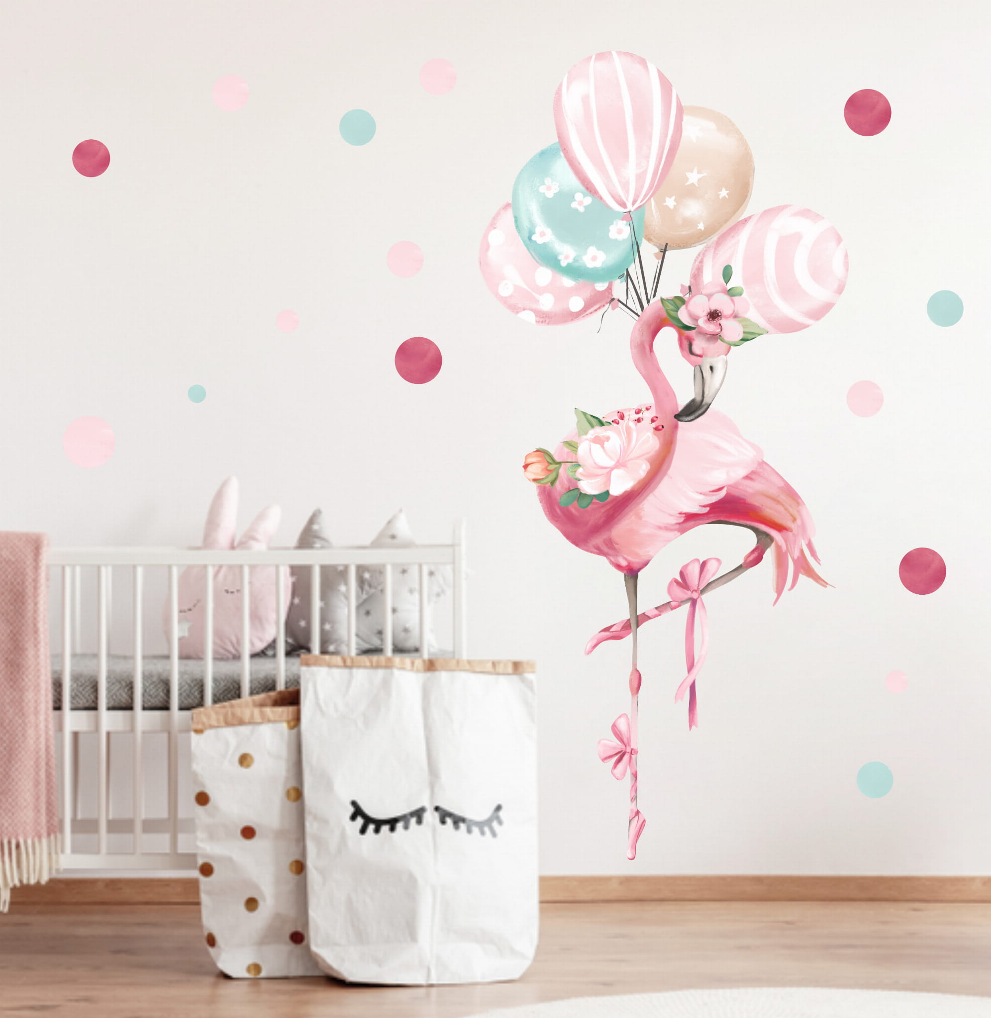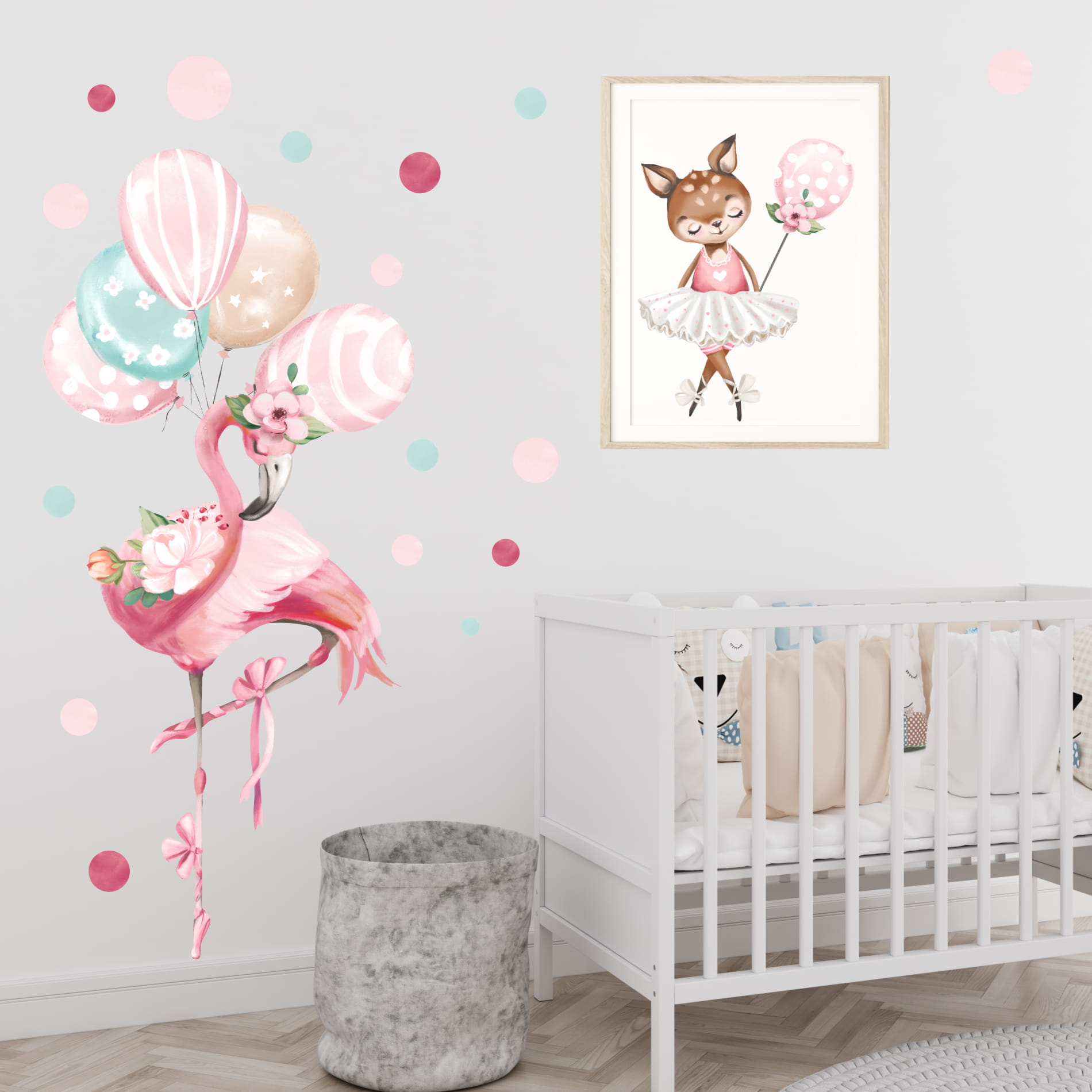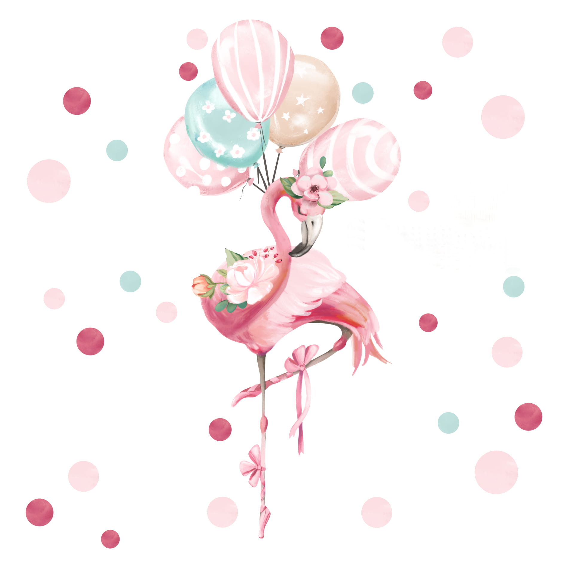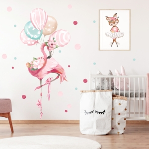 Balet, lekkość i bajkowa magia – to wszystko zamknięte w wyjątkowej naklejce z flamingiem i balonikami! Ta subtelna dekoracja wniesie do pokoju Twojego dziecka odrobinę marzycielskiego klimatu i elegancji. Delikatne kolory i lekkość wzoru sprawiają, że naklejka doskonale komponuje się z innymi elementami kolekcji, tworząc spójną i harmonijną aranżację.