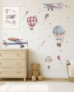 Naklejka Samoloty Retro (Zestaw 4) to część autorskiej kolekcji Małej Pracowni. Motyw samolotów i balonów retro sprawdzi się jako dekoracja w pokoju chłopca.