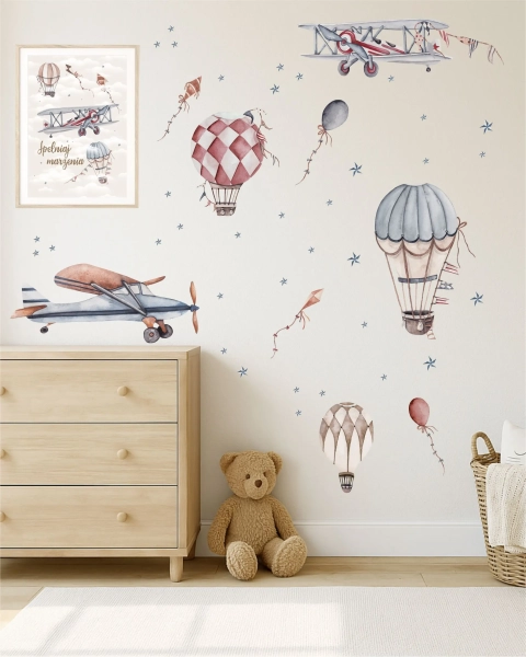 Samoloty, Balony i Latawce Retro IV | Naklejka na Ścianę dla Chłopców