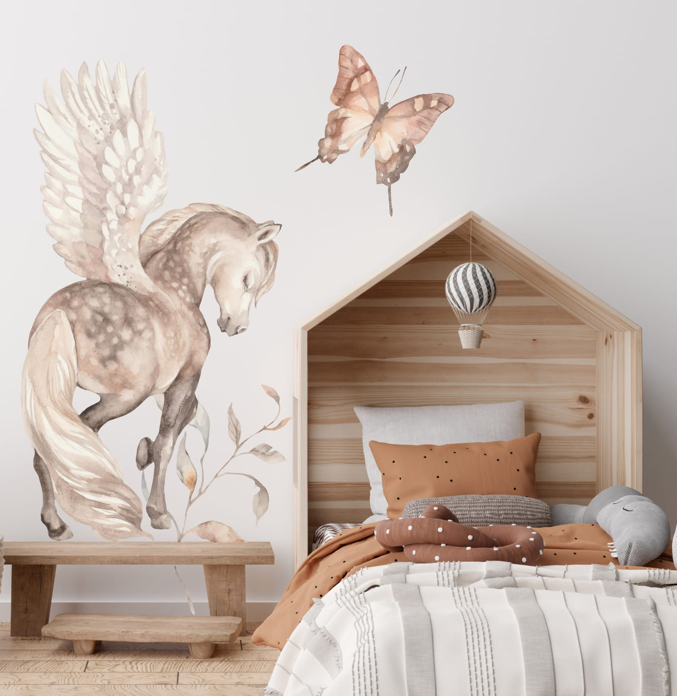 Zestaw zawiera: skrzydlaty rumak 150 x 81cm, motylek 53 x 50cm, gałązka 71 x51cm