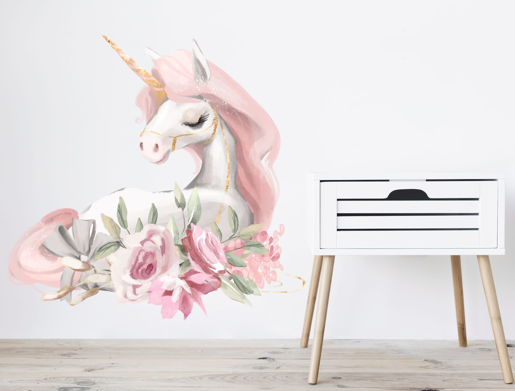 Naklejka cięta po obrysie ,brak tła.Każda miłośniczka jednorożców będzie zachwycona mając go w swoim pokoju :)