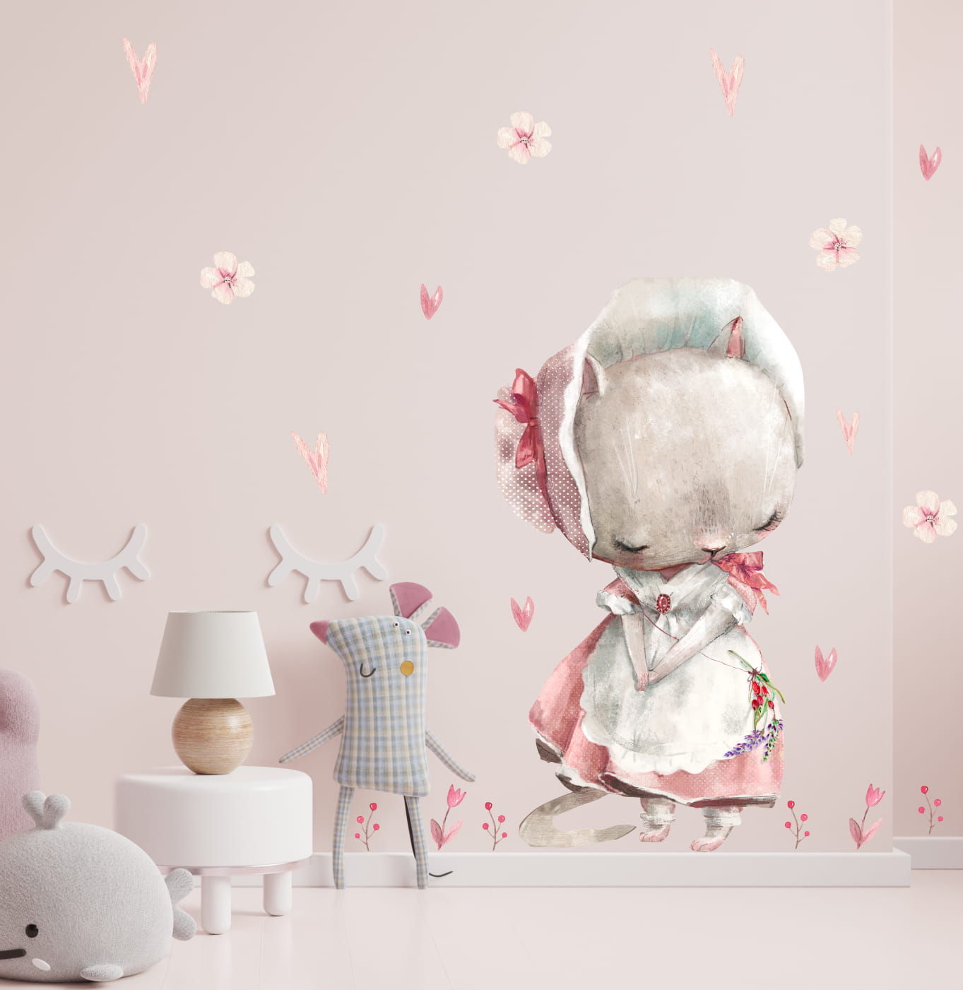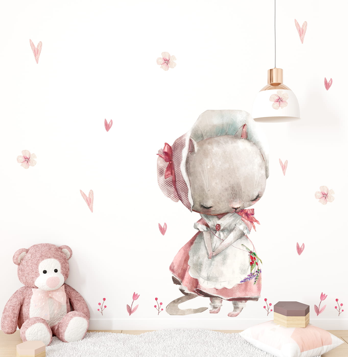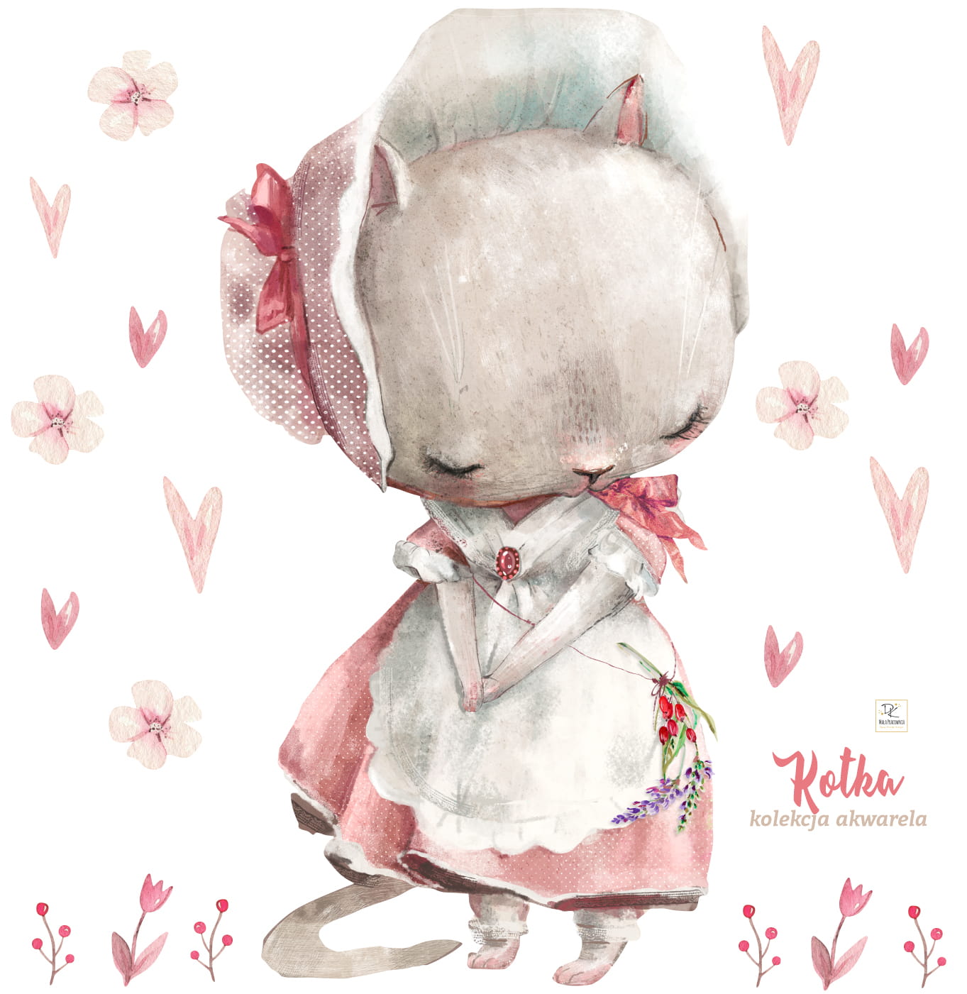 Zestaw zawiera: kotka 118 x 64cm, + dodatki kwiatki, serduszka (wszystkie widoczne na wizualizacji)