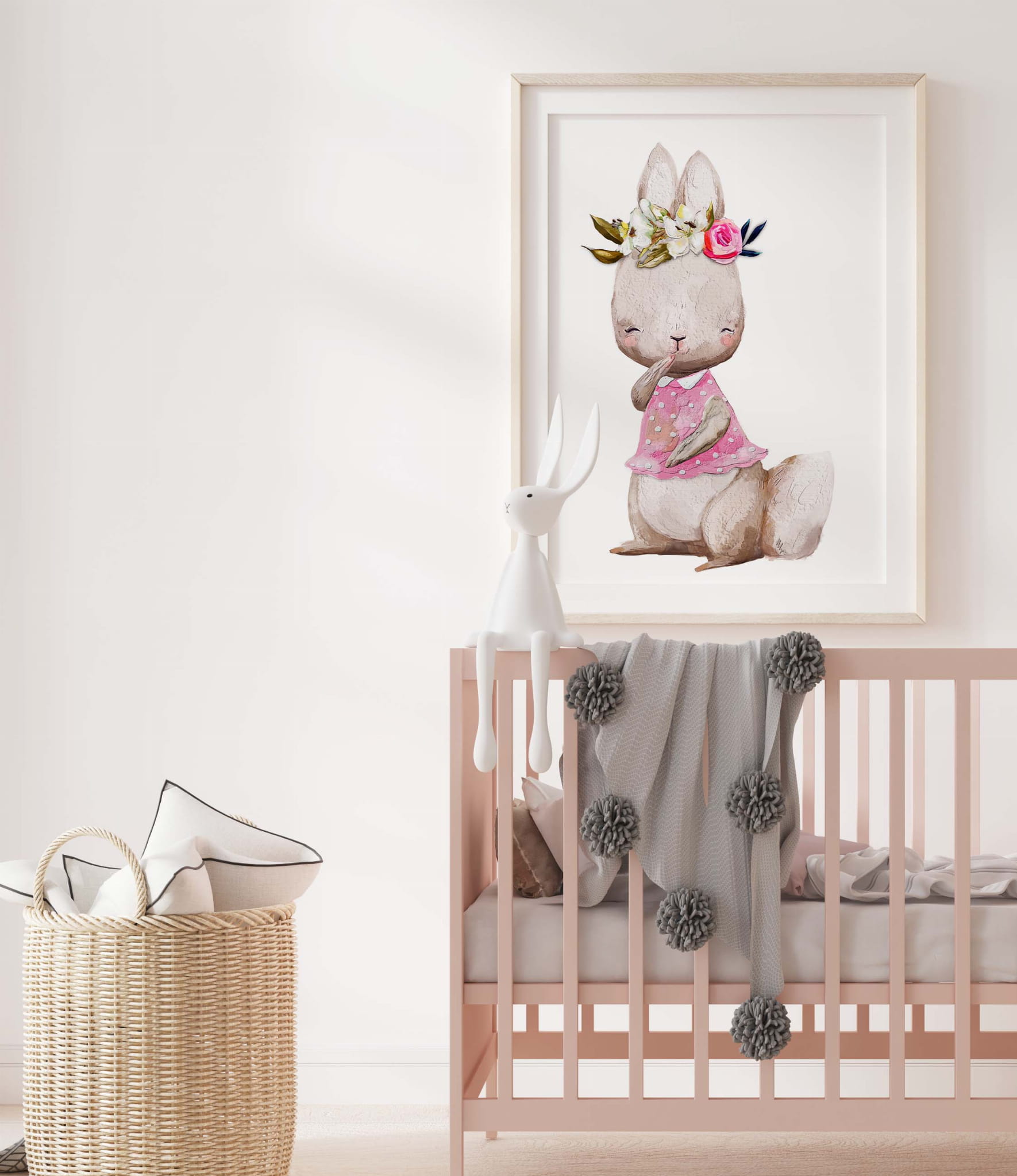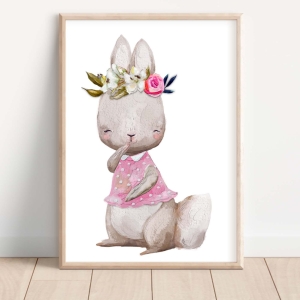 Króliczek z wianuszkiem | Plakat, obrazek na ścianę dla dzieci