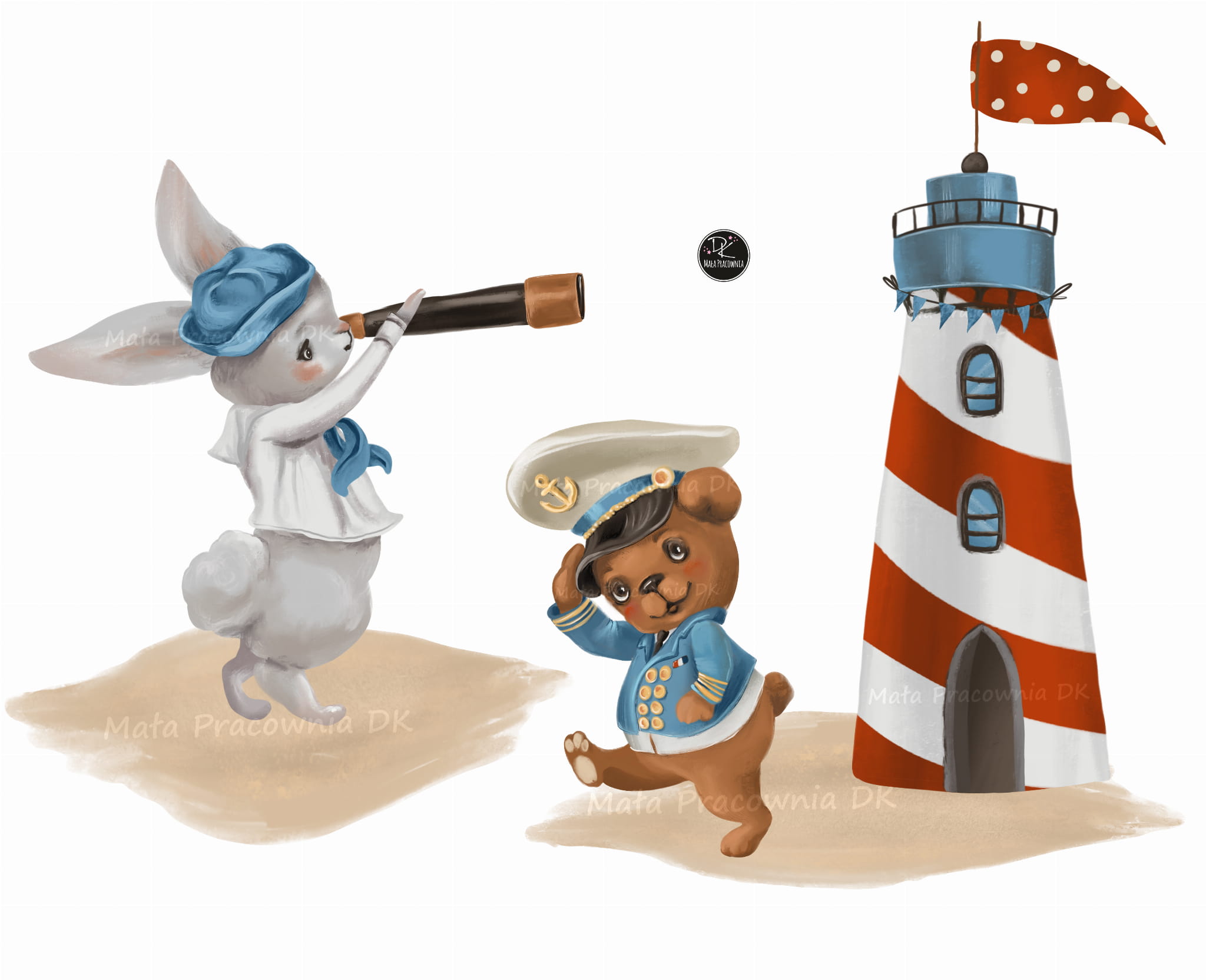 Królik, miś - marynarskie II | Naklejka na ścianę dla dzieci