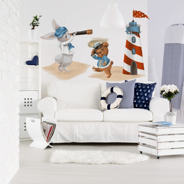 Królik, miś marynarskie II | Naklejka na ścianę dla dzieci