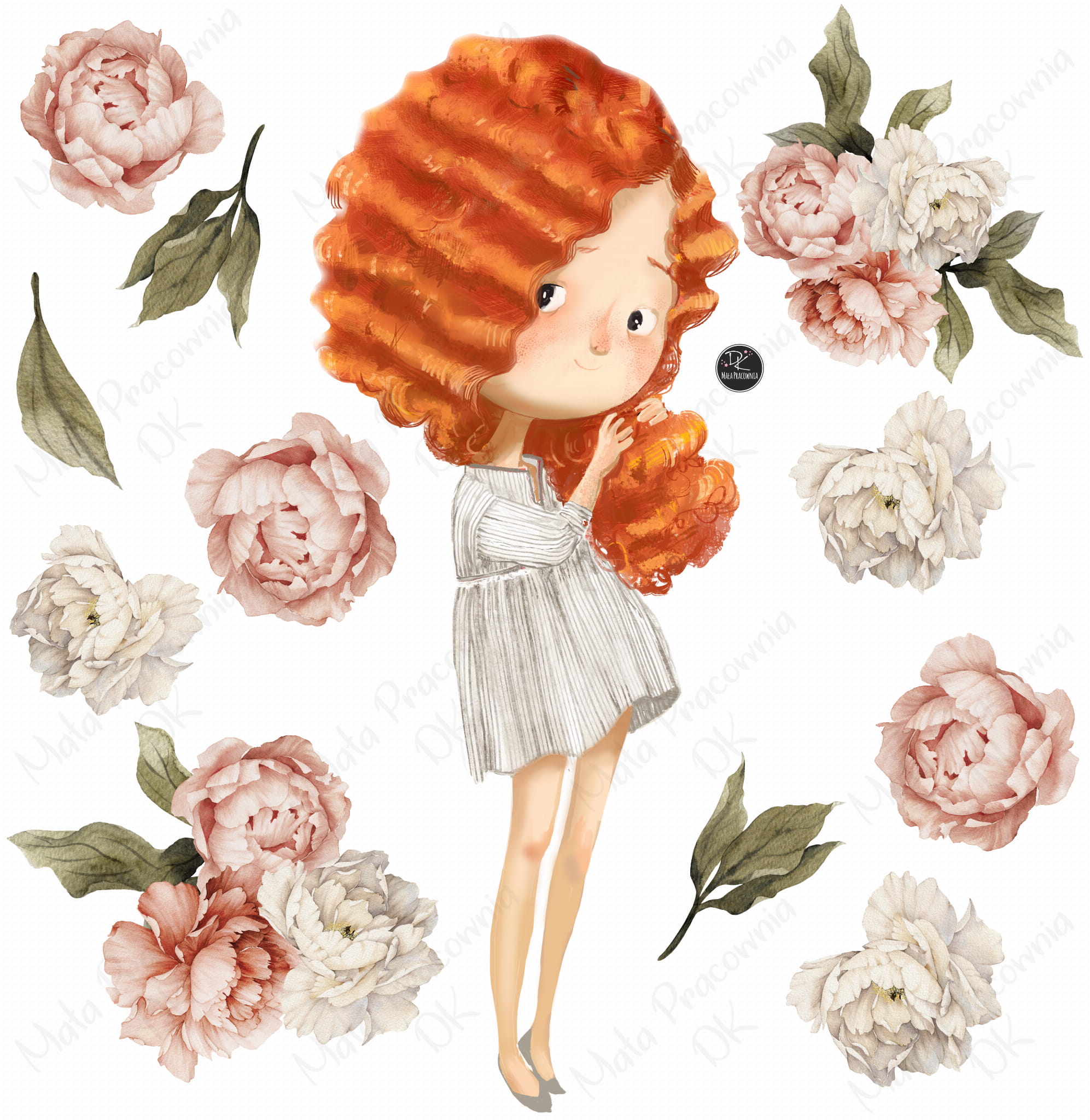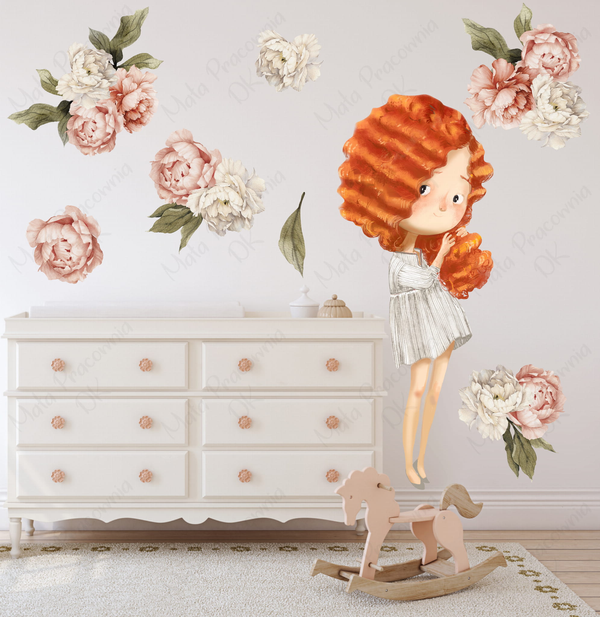 Lora i piwonie - Naklejka na ścianę dla dzieci