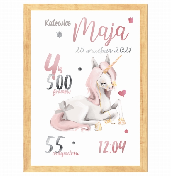 Projekty personalizowane wysyłamy do akceptacji. Po złożeniu zamówienia pamiętaj aby w uwagach (w koszyku) podać wszystkie niezbędne dane do metryczki. Przy zakupie plakatów z ramkami plakat zostanie umieszczony w ramce.