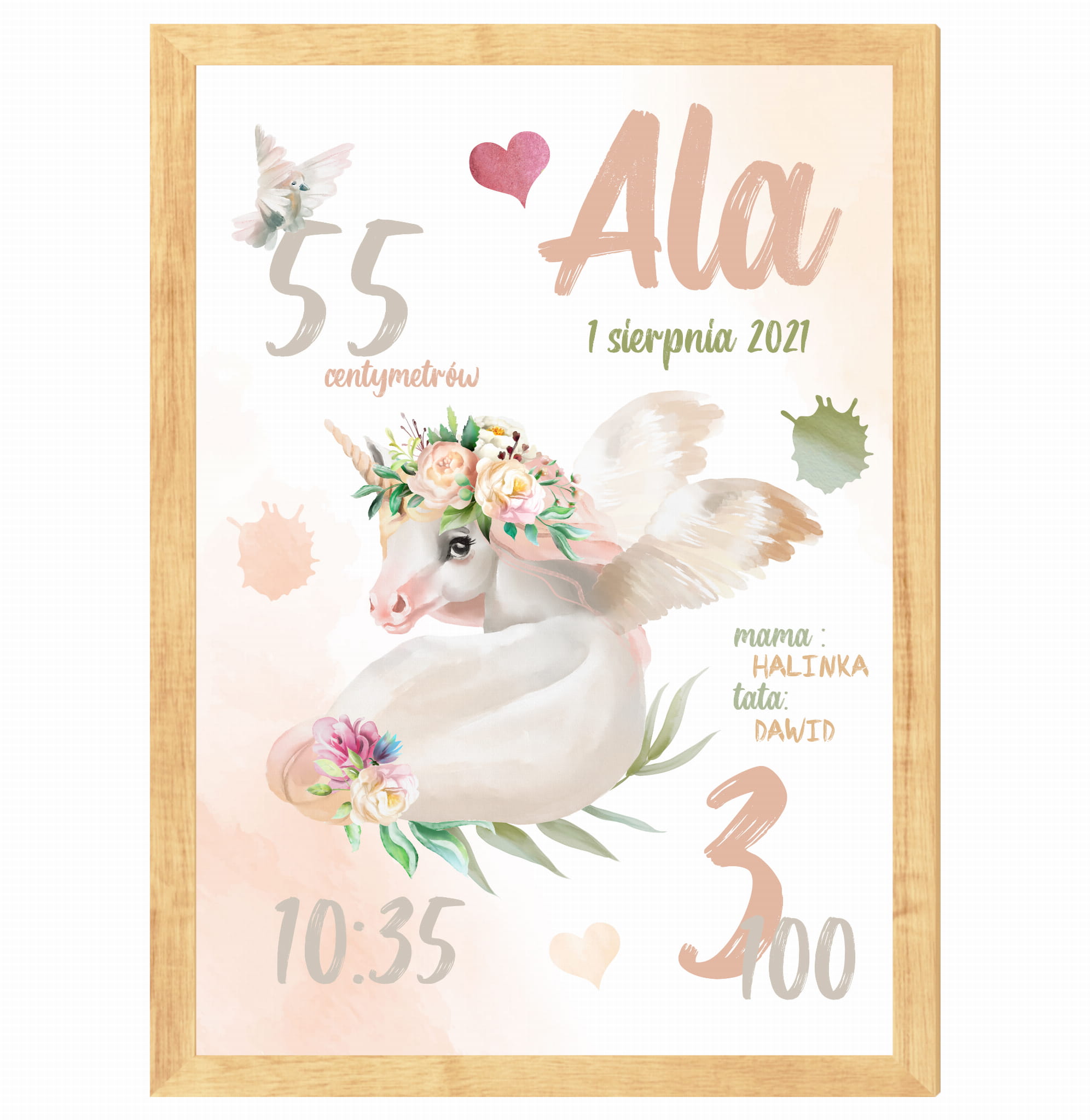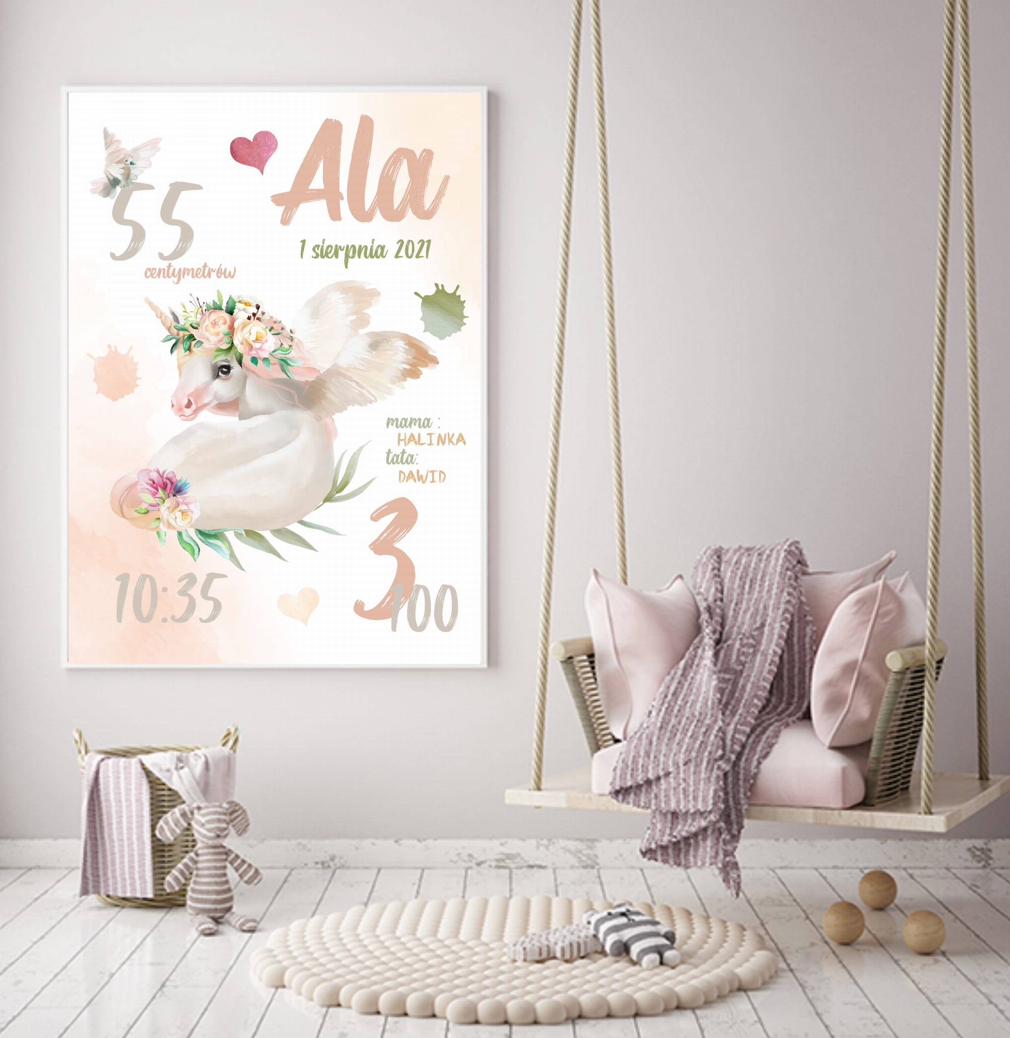 Personalizowana metryczka to wspaniała pamiątka jak i dodatek do dziecięcego pokoju.