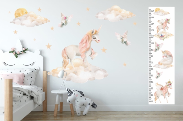 Miarka wzrostu- jednorożec, unicorn | Naklejka na ścianę dla dzieci