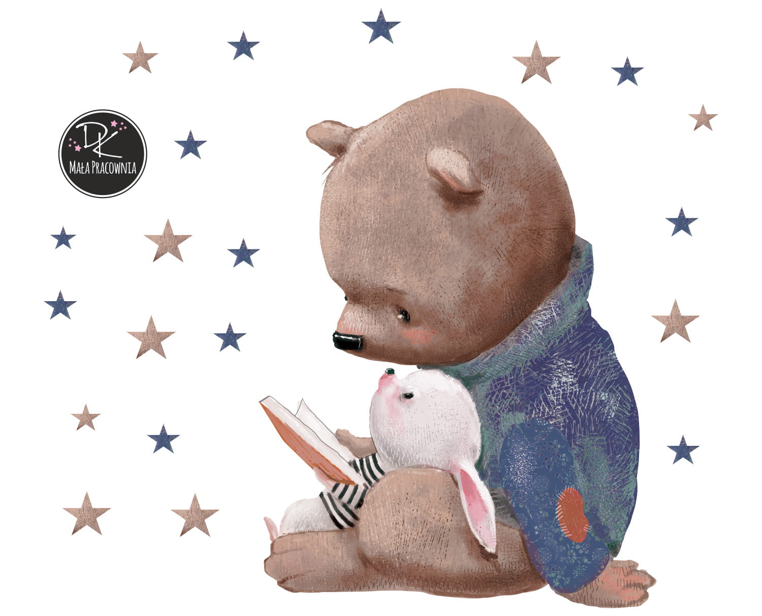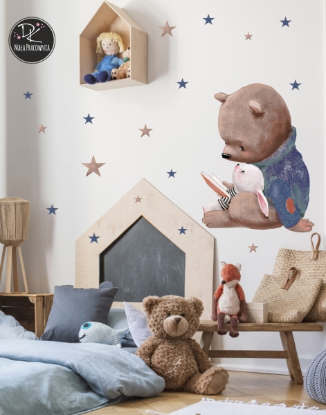Misiu i zajączek z książeczką | Naklejka na ścianę dla dzieci