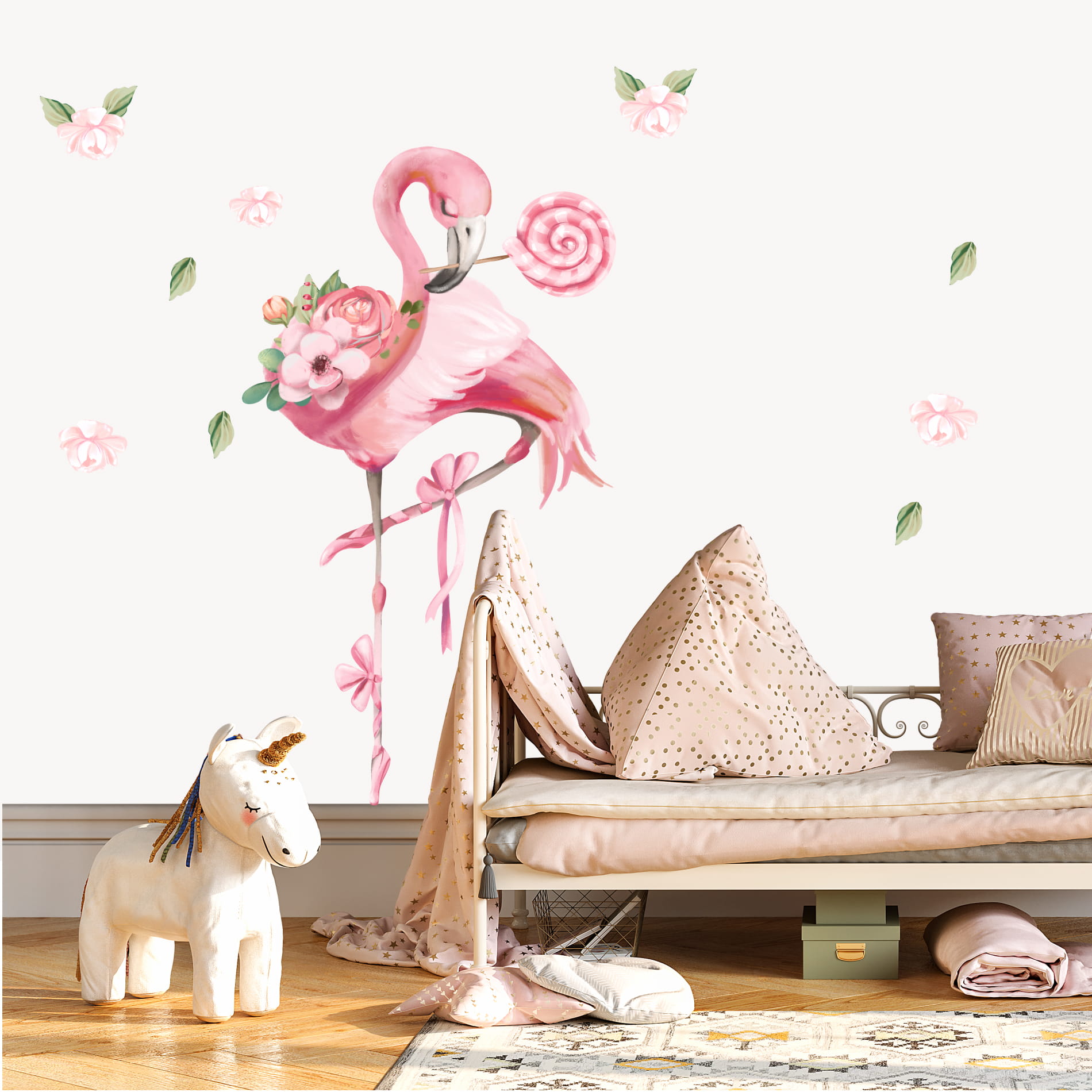 Flaming z lizakiem | Naklejka do pokoju dziewczynki