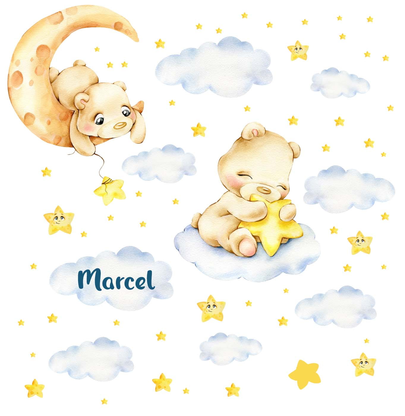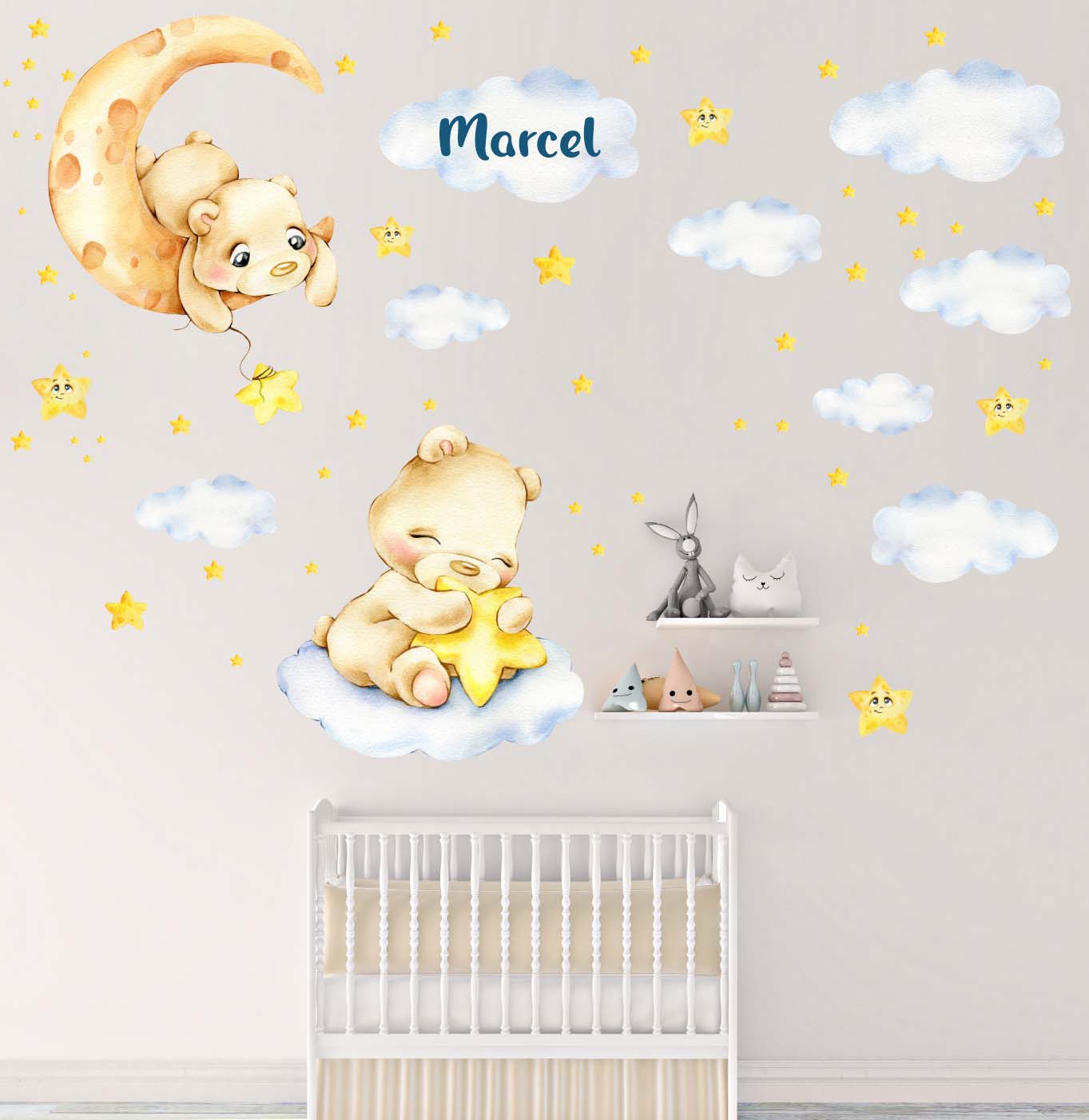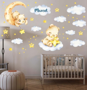 Naklejka miś na księżycu, miś na chmurce - zestaw