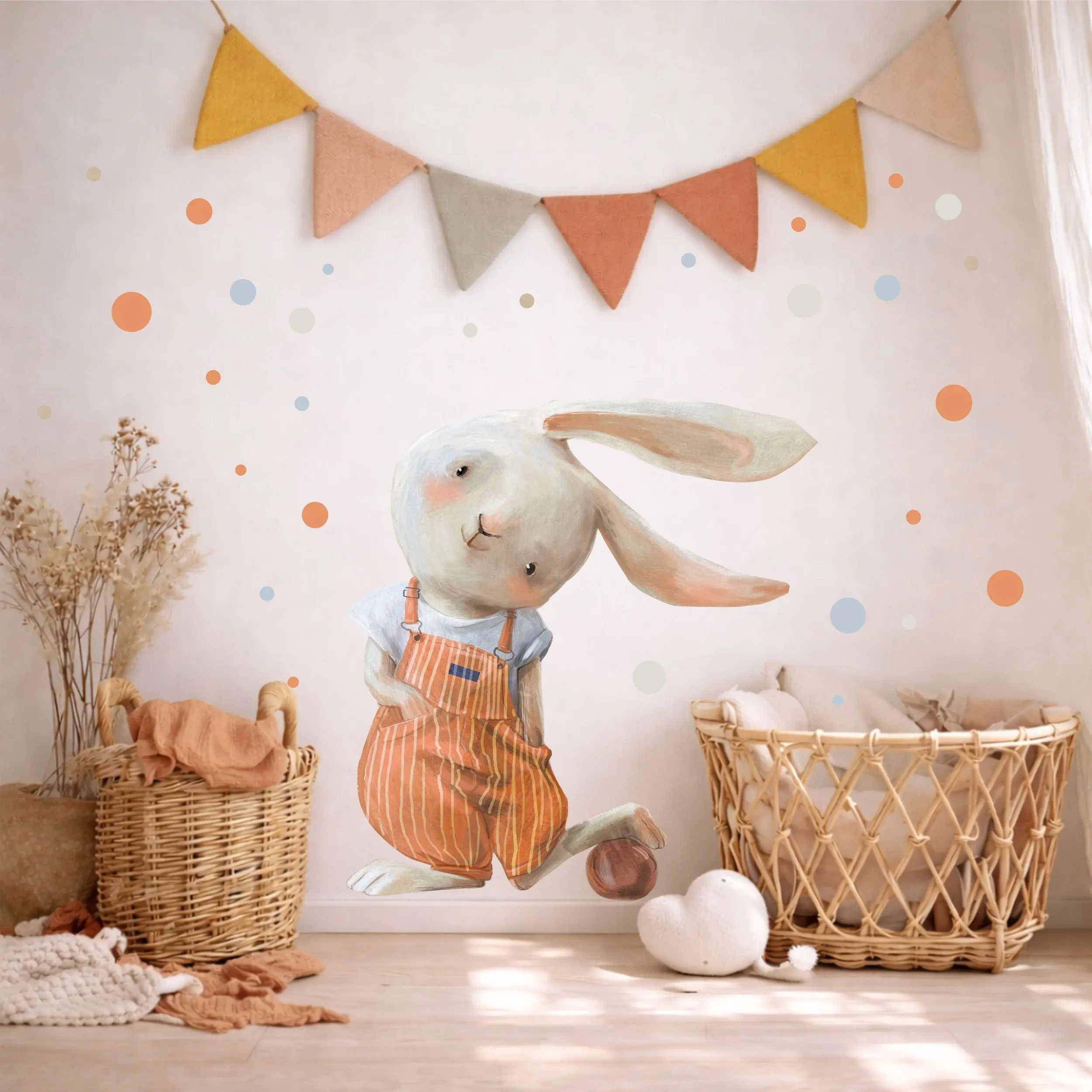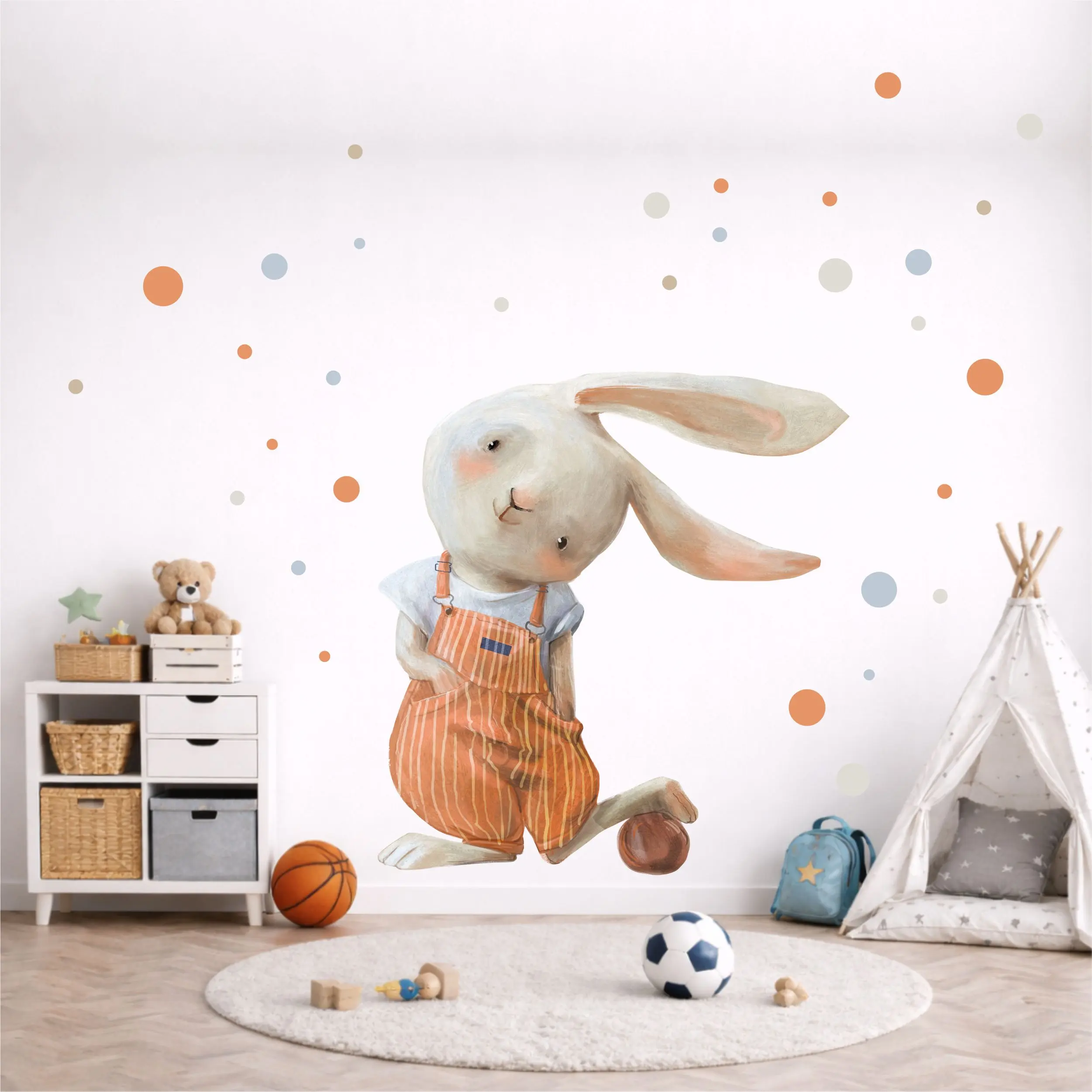 Czasem wystarczy jeden mały detal, by dziecięcy pokój stał się jeszcze bardziej przytulny. Króliczek z piłką to naklejka, która wnosi do wnętrza ciepło, delikatność i nutę beztroskiej zabawy – dokładnie to, co tak bardzo lubimy w przestrzeni dla dzieci.