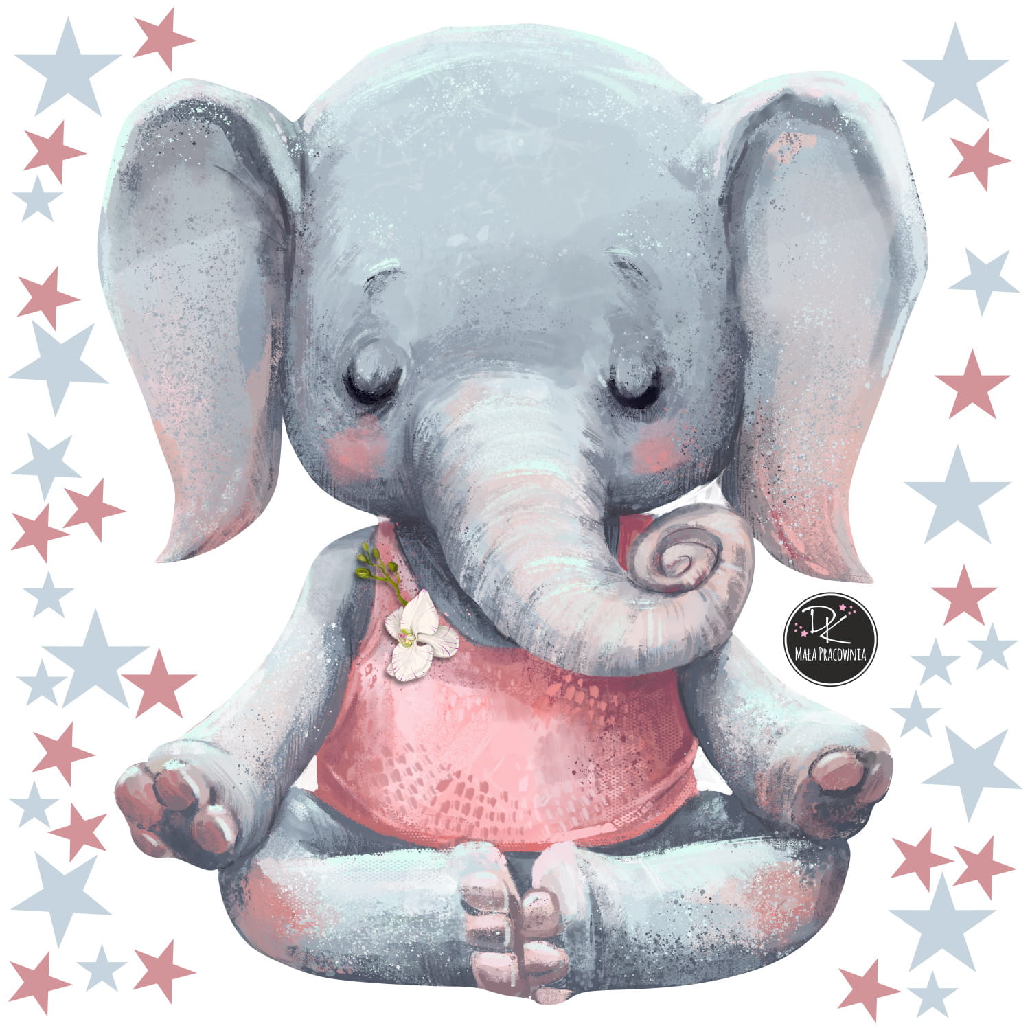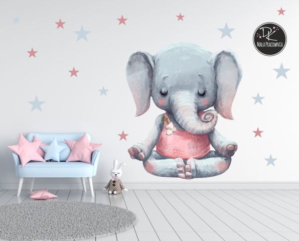 Naklejka na ścianę dla dzieci słonik ,gwiazdki