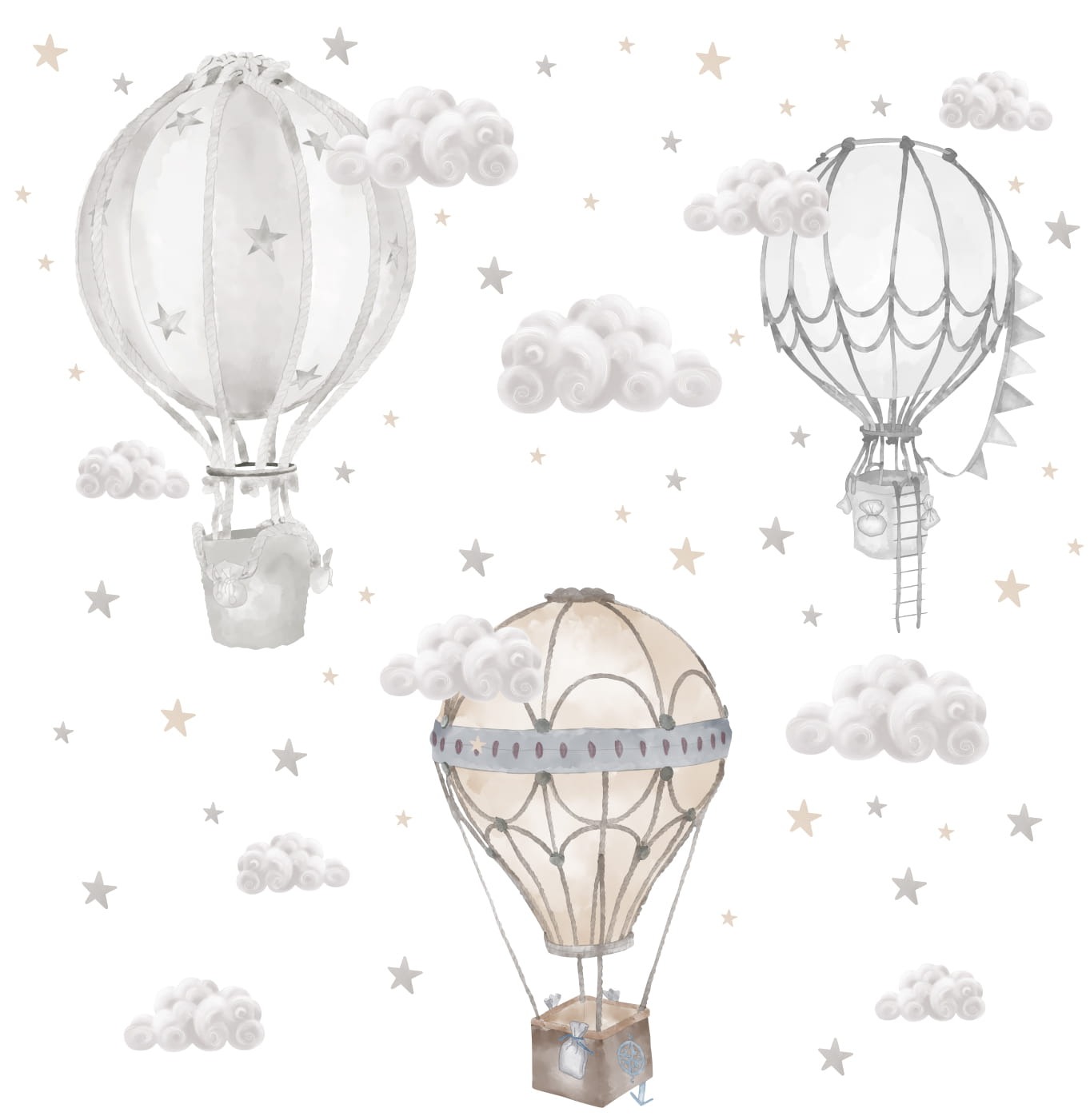 Naklejki na ścianę | Balony beżowo-szare, chmurki