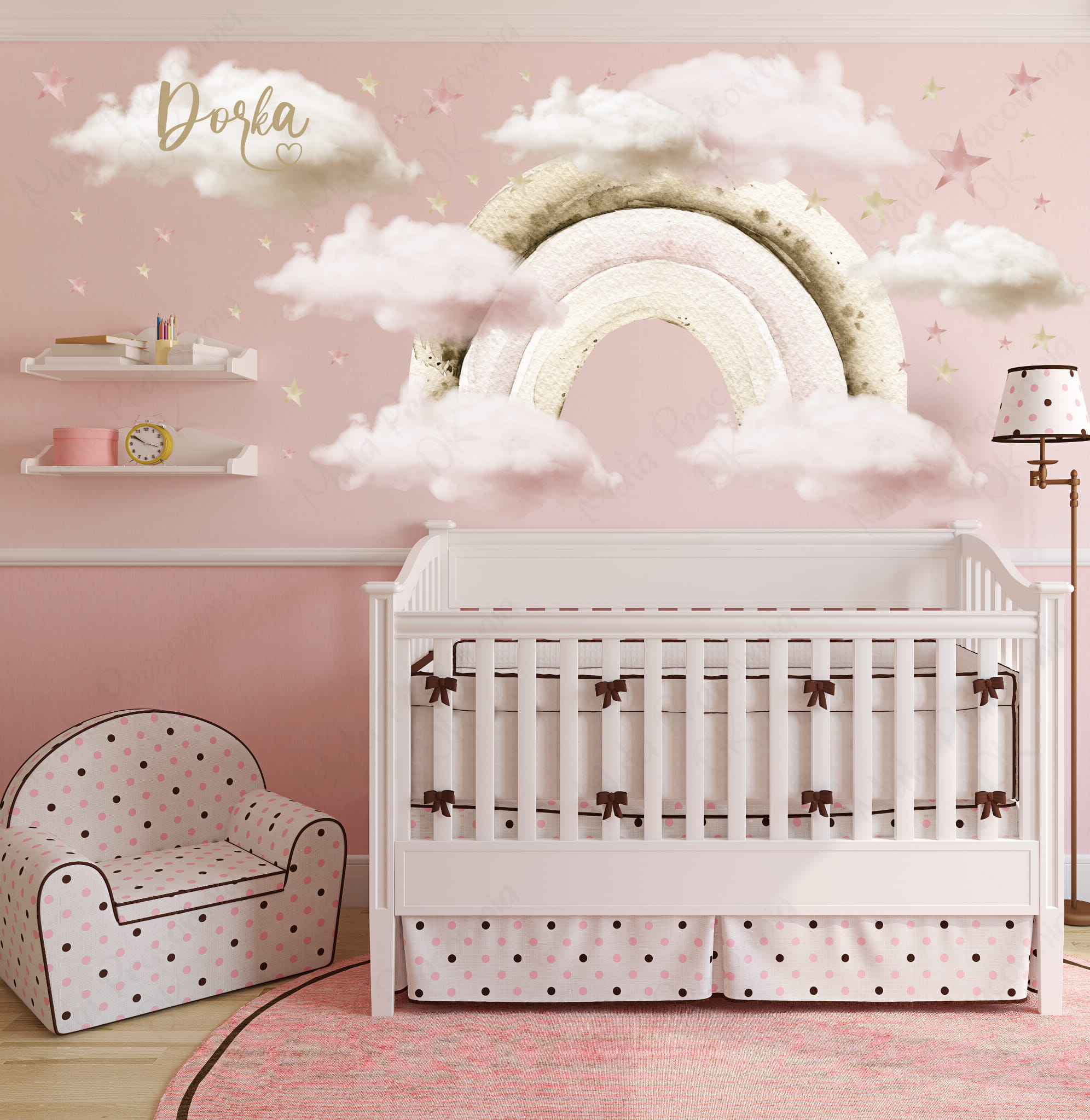 Zwierzątka na tęczy w otoczeniu chmurek i gwiazdek dodadzą nadzwyczajnego charakteru i skradną serca wszystkich.