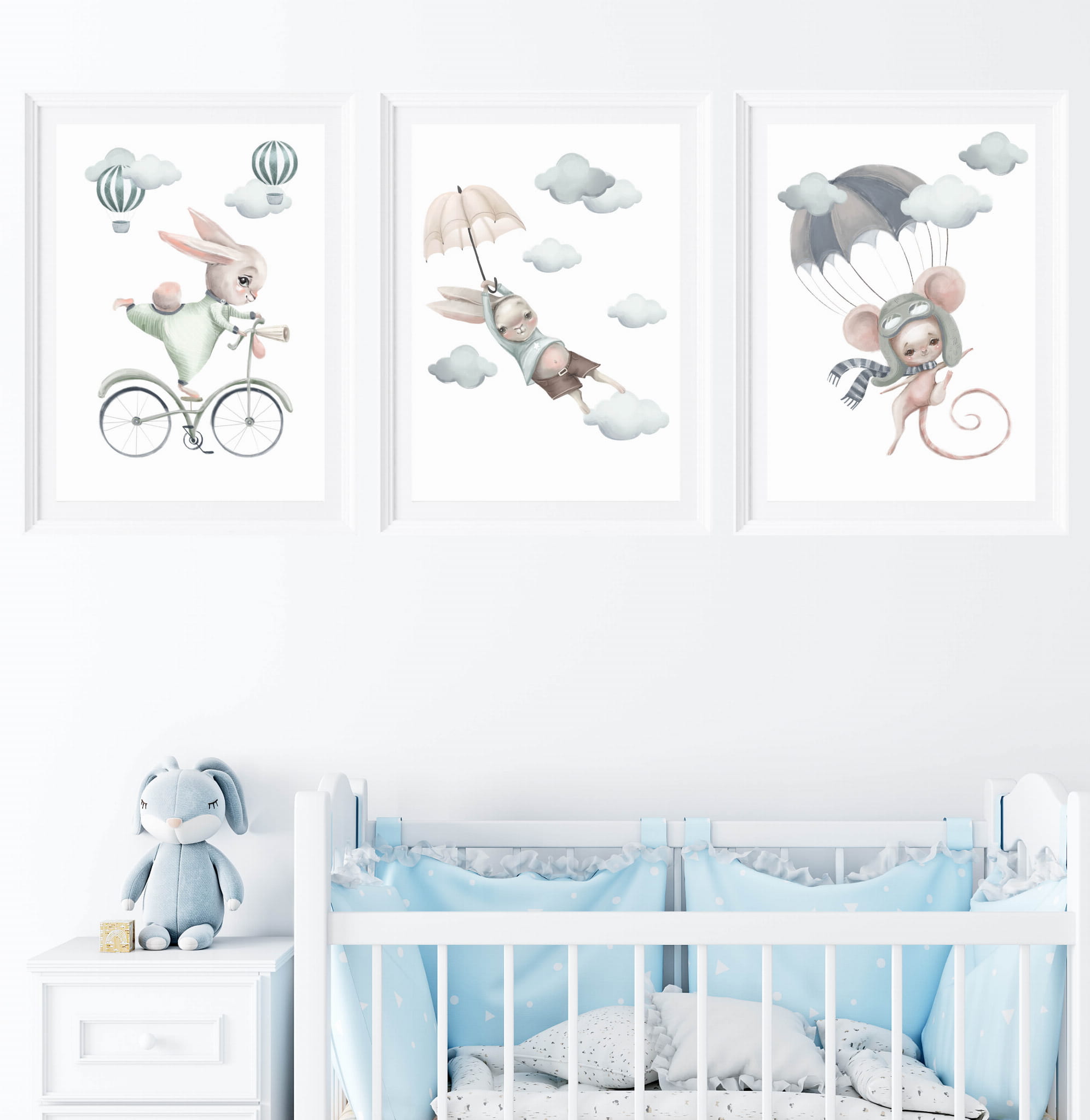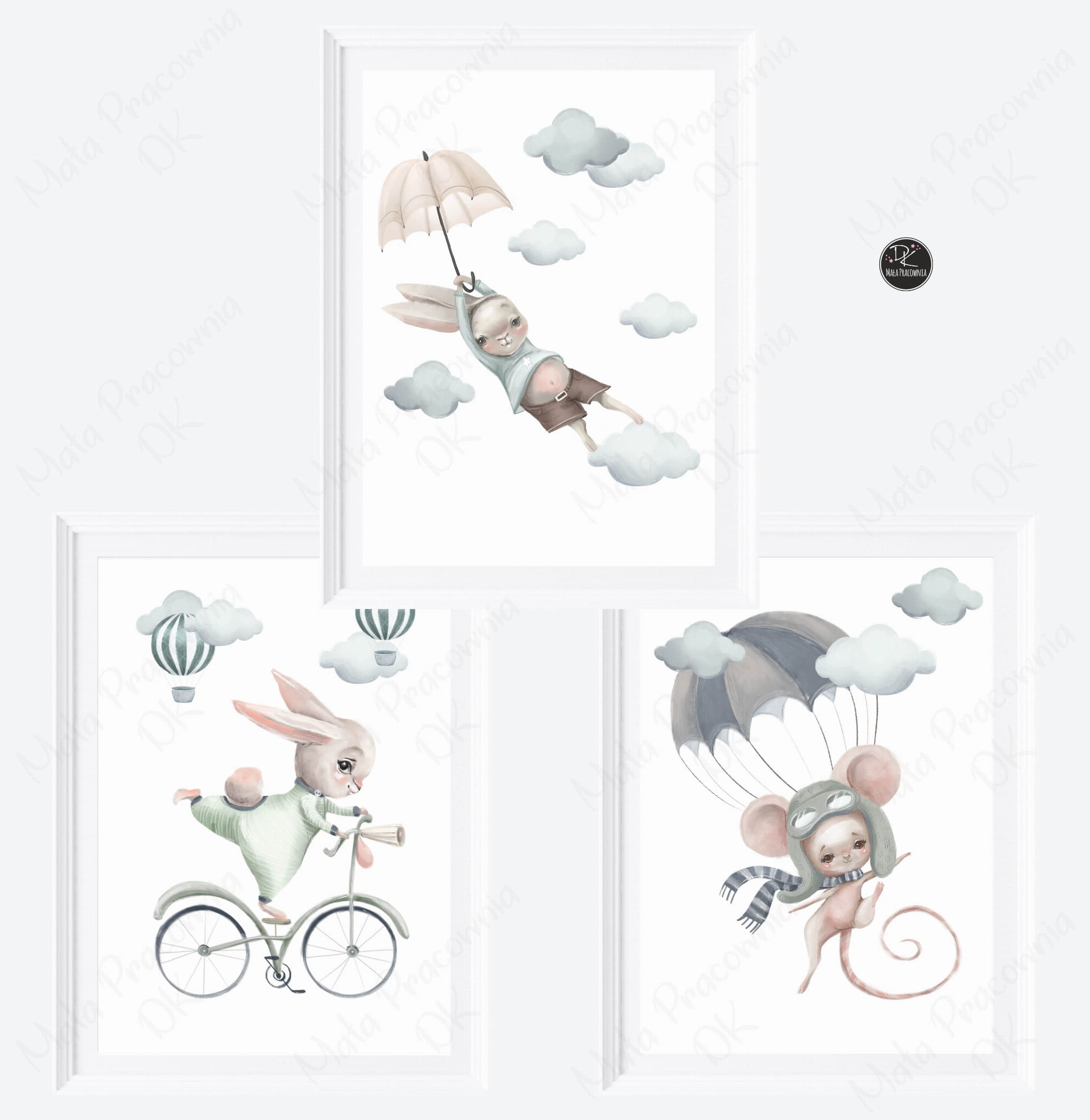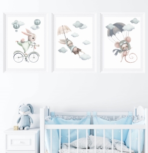 Pastelowe króliczki, liski, balony - Zestaw plakatów Nr 6