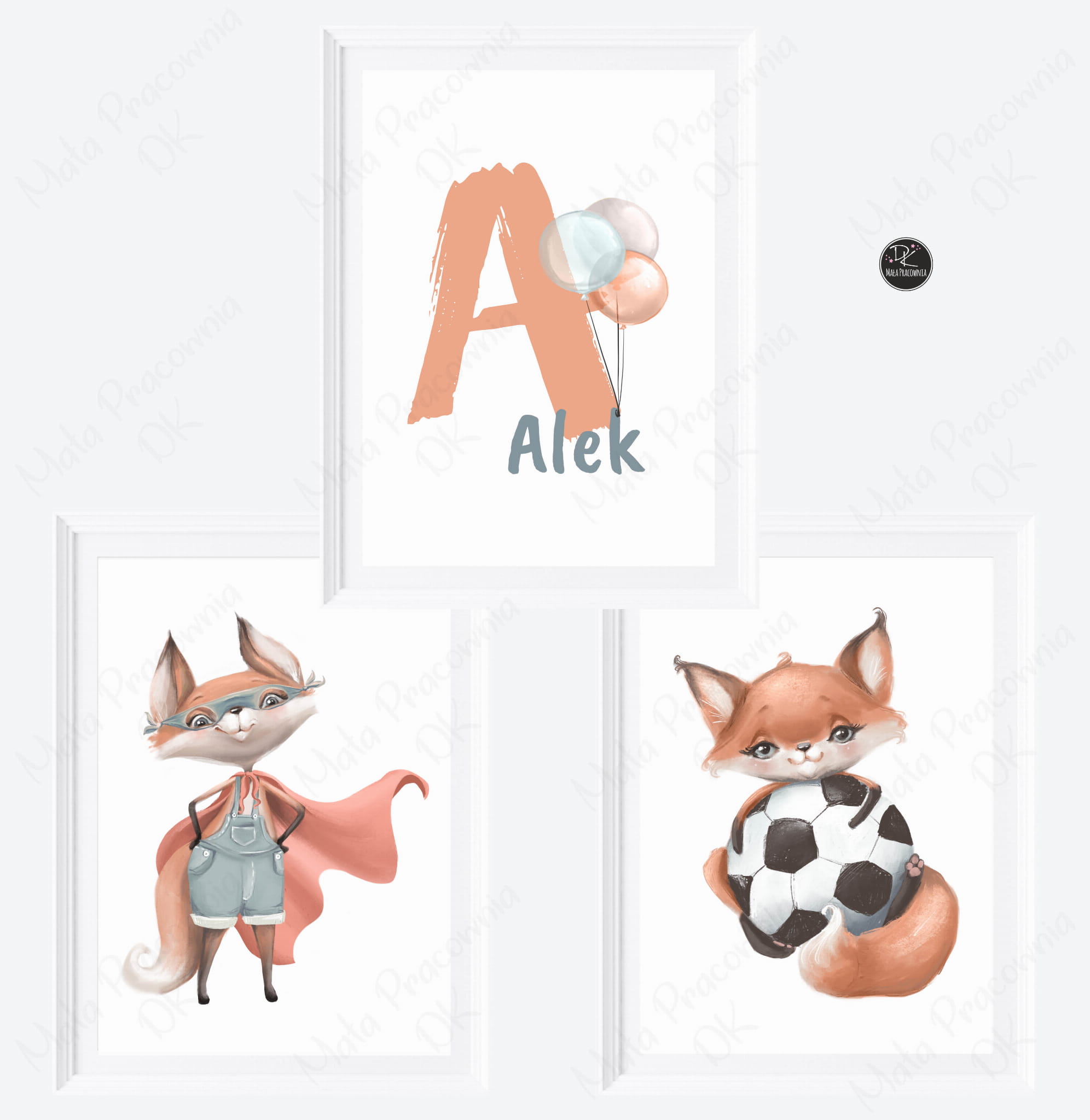 Pastelowe króliczki, liski, balony - Zestaw plakatów Nr. 1