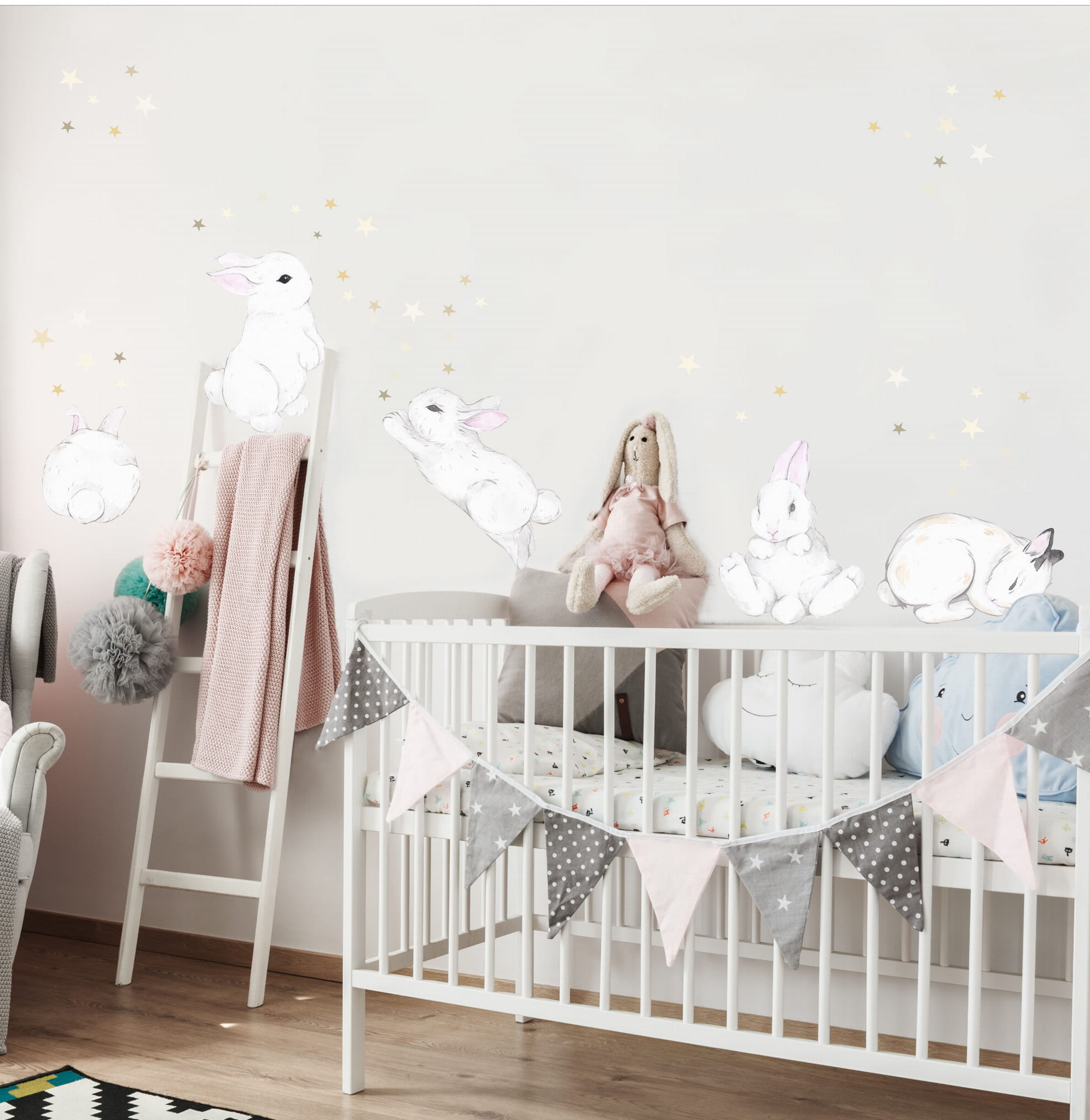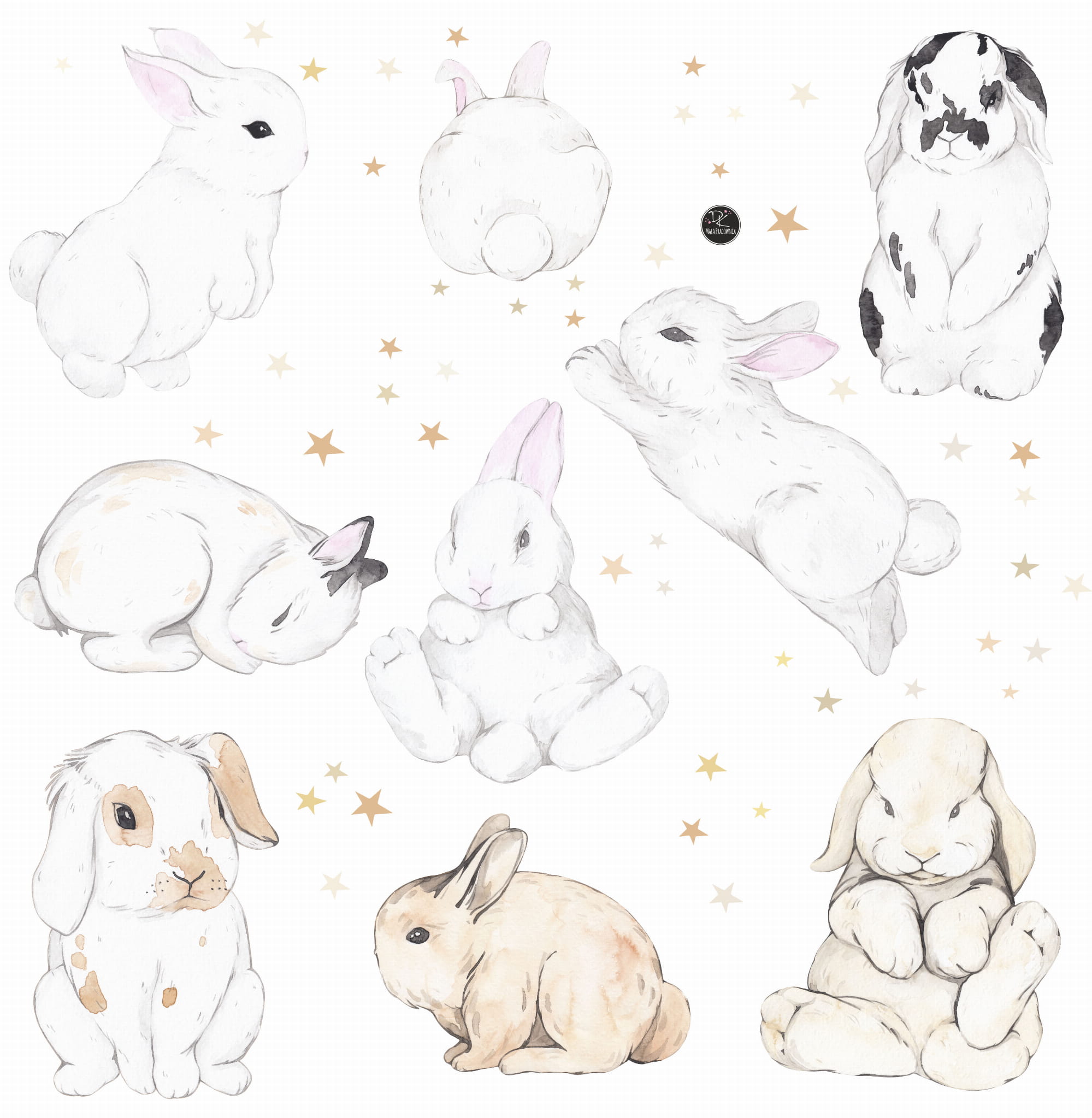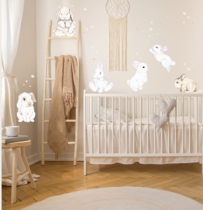 Pastelowe króliczki gwiazdeczki komplet 9szt | Zestaw naklejek