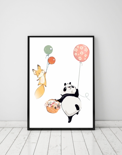 Plakat dla dzieci panda,lisek ,balonik