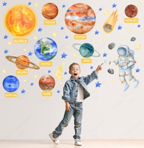 Nasze naklejki to nie tylko ozdoba, ale także inspiracja do odkrywania kosmosu w sposób przyjemny i ekscytujący. Dzięki podpisanym planetom dziecko uczy się ich nazw, poznając układ słoneczny w naturalny i angażujący sposób. Razem odkrywajmy tajemnice wszechświata i pozwólmy dziecięcym marzeniom sięgnąć gwiazd!