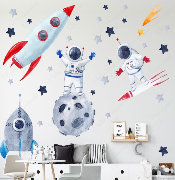 Rakieta, astronauta, kosmos | Naklejka na ścianę dla dzieci