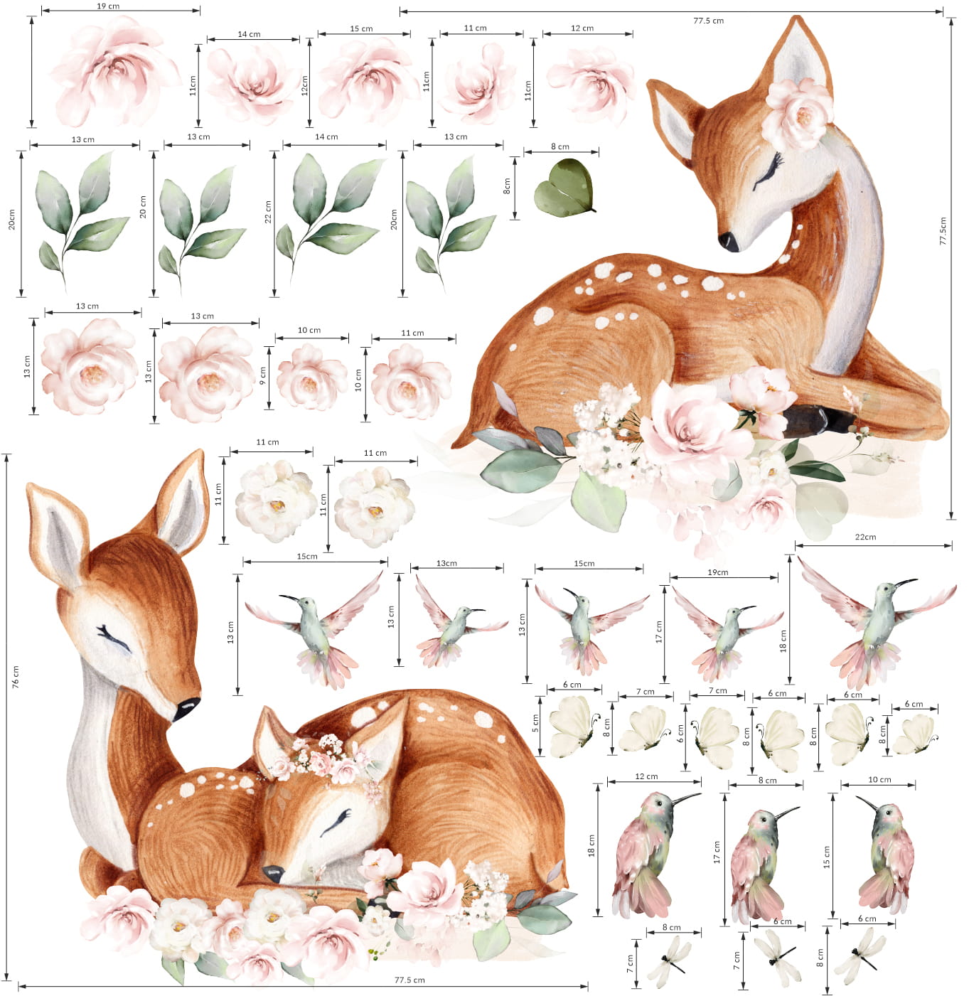 Stwórz razem z nami niepowtarzalny klimat w pokoju Twojego dziecka. Nasze naklejki wywołują uśmiech a dzieci je po prostu uwielbiają :) Cudna pastelowa kolekcja która będzie piękną ozdobą w każdym pokoju. Wymiary pokazane na ostatnim zdjęciu.
