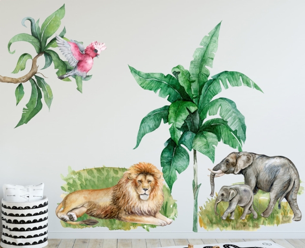 Sawanna lew, słoń |Naklejka na ścianę dla dzieci