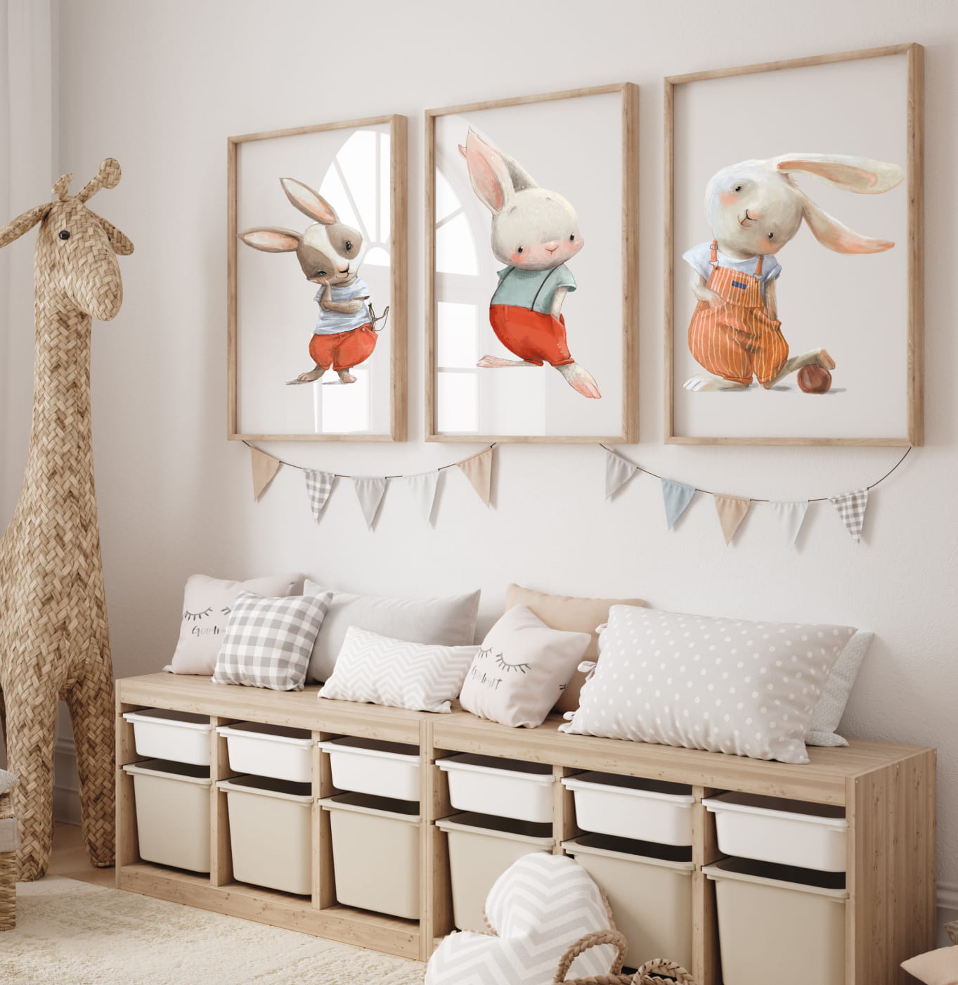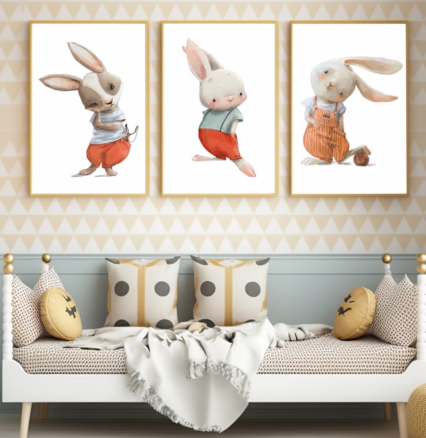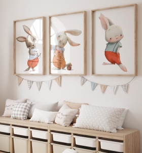 ZESTAW 3 OBRAZKI, PLAKATY - KRÓLICZEK Z PIŁKĄ, Z PROCĄ DK23