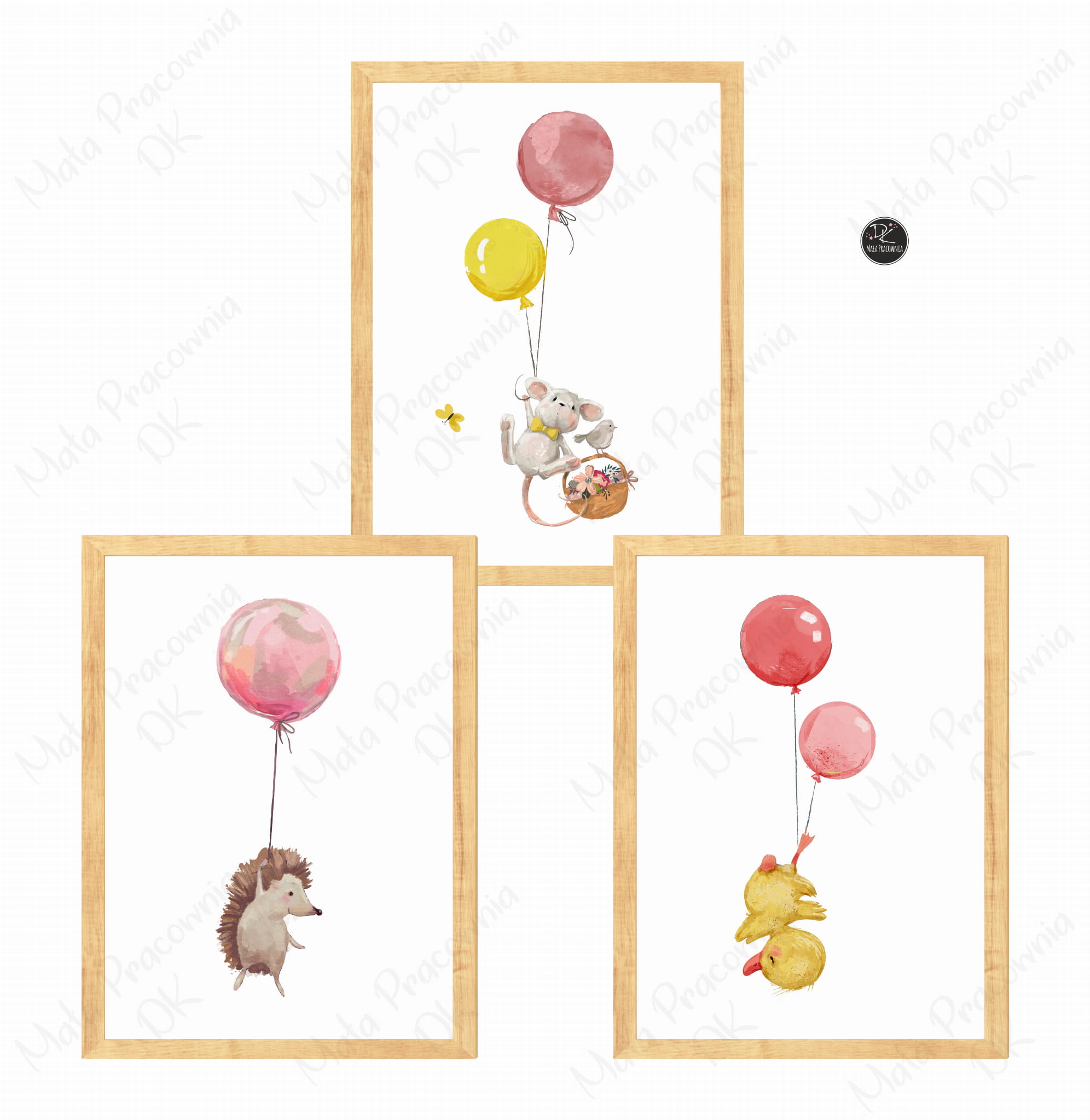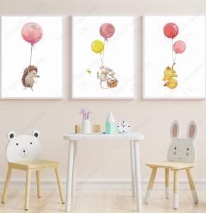 ZESTAW 3 OBRAZKI,JEŻ,BALONIKI,KACZUSZKA