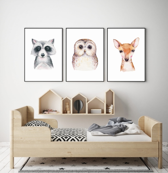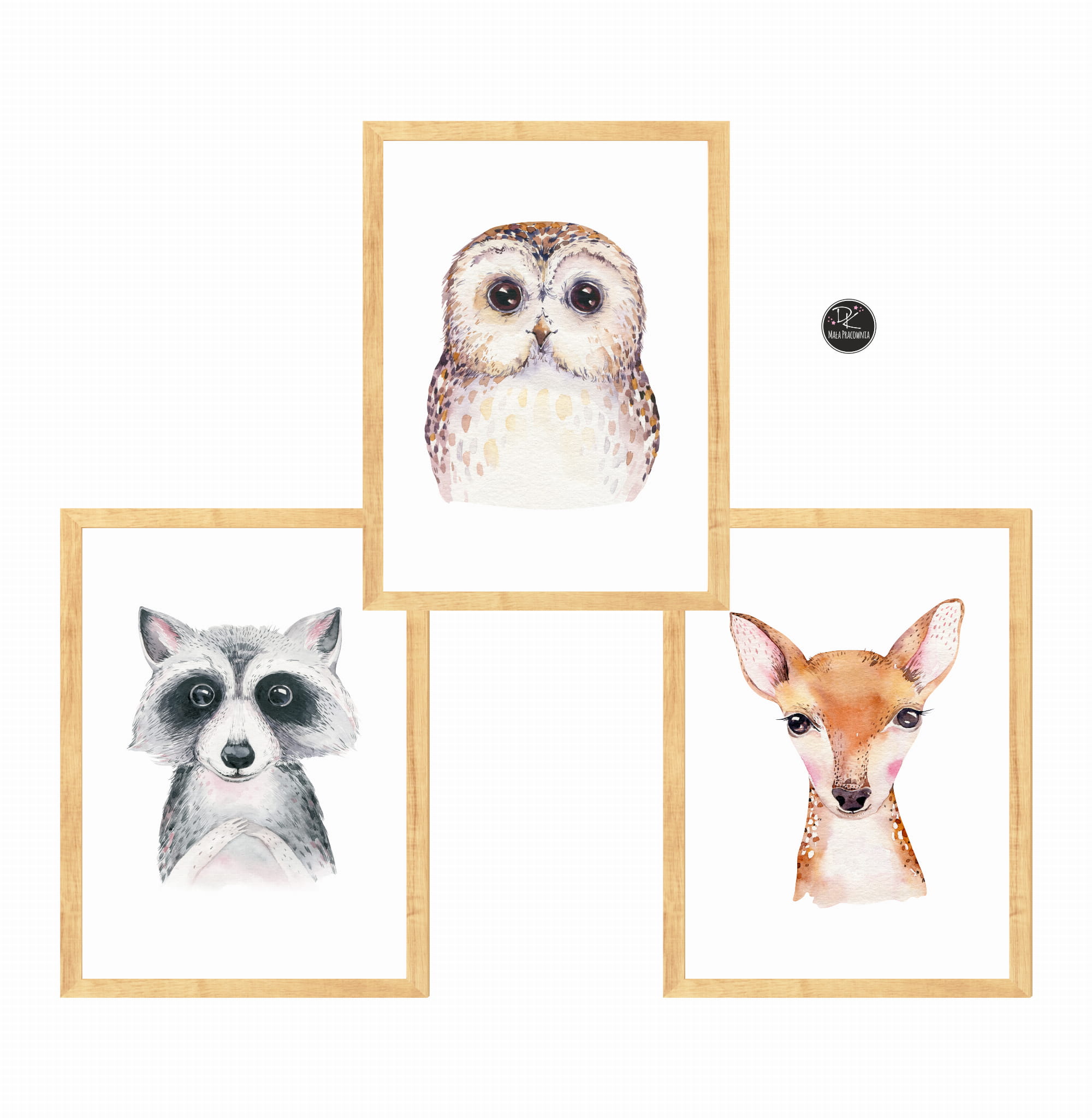 ZESTAW 3 OBRAZKI leśni przyjaciele akwarela Nr 6