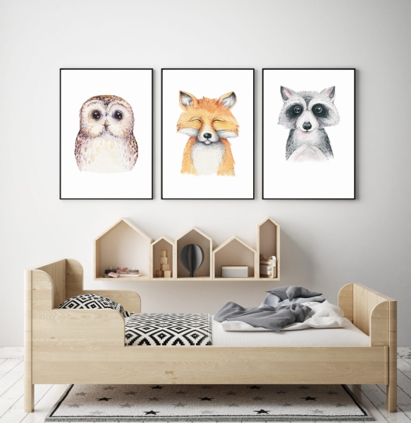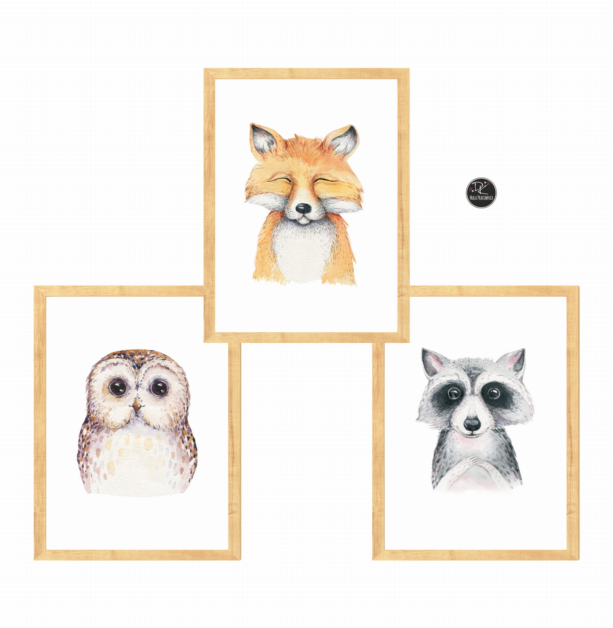 ZESTAW 3 OBRAZKI leśni przyjaciele akwarela Nr 7