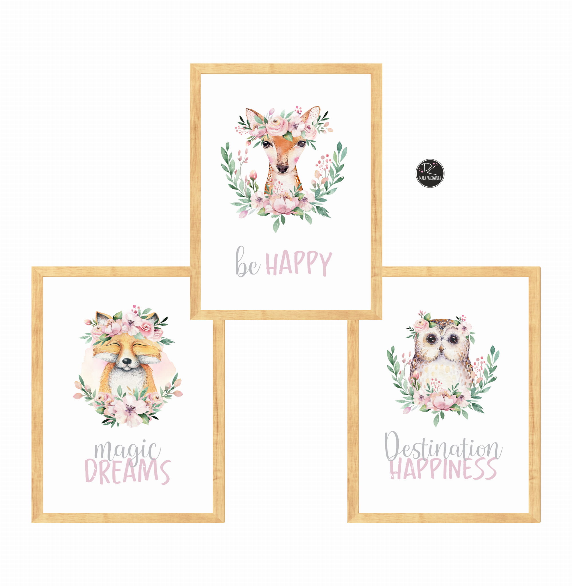 ZESTAW 3 OBRAZKI leśni przyjaciele akwarela Nr 8