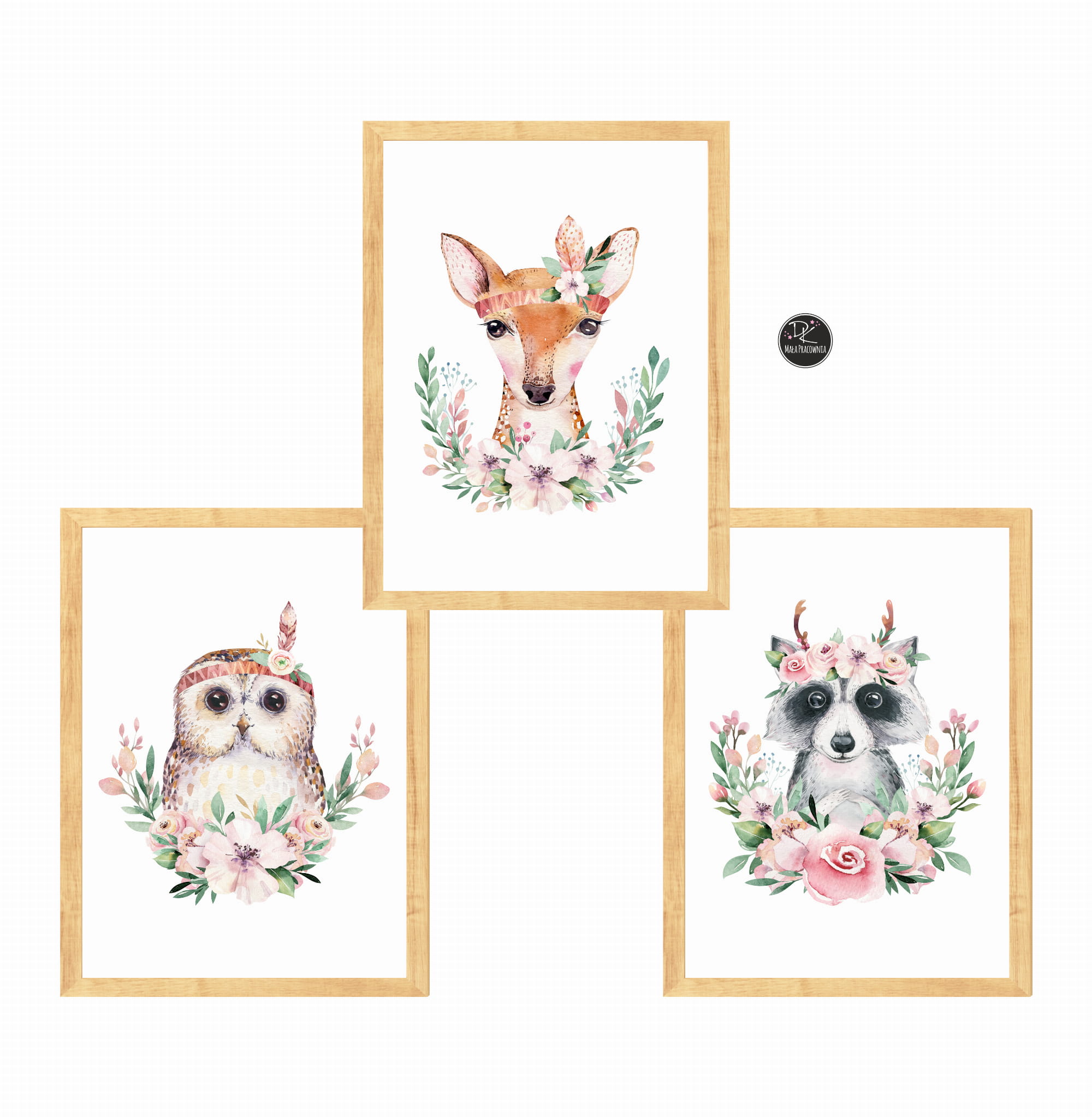 ZESTAW 3 OBRAZKI leśni przyjaciele akwarela Nr 9