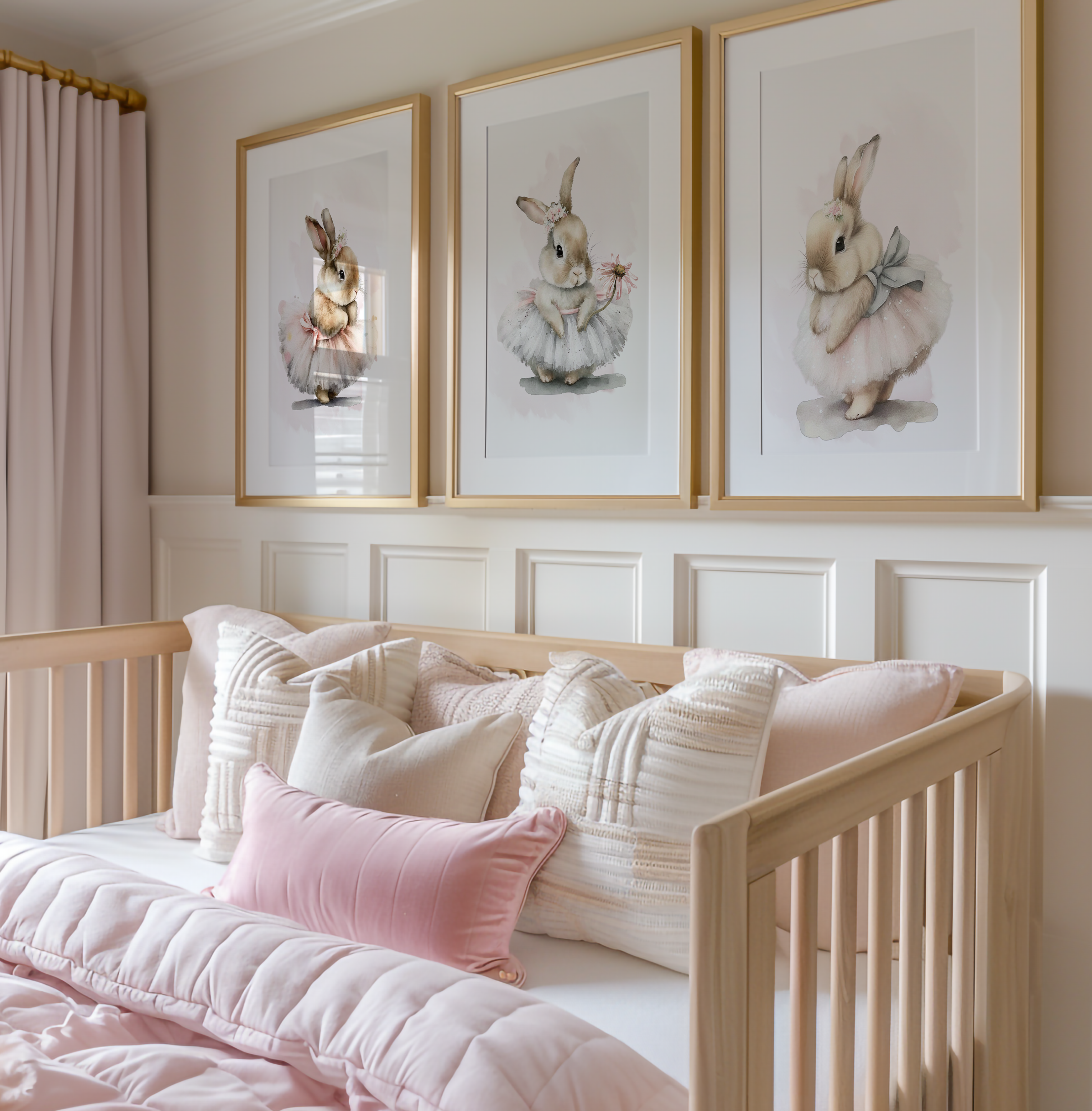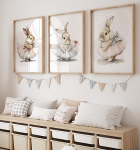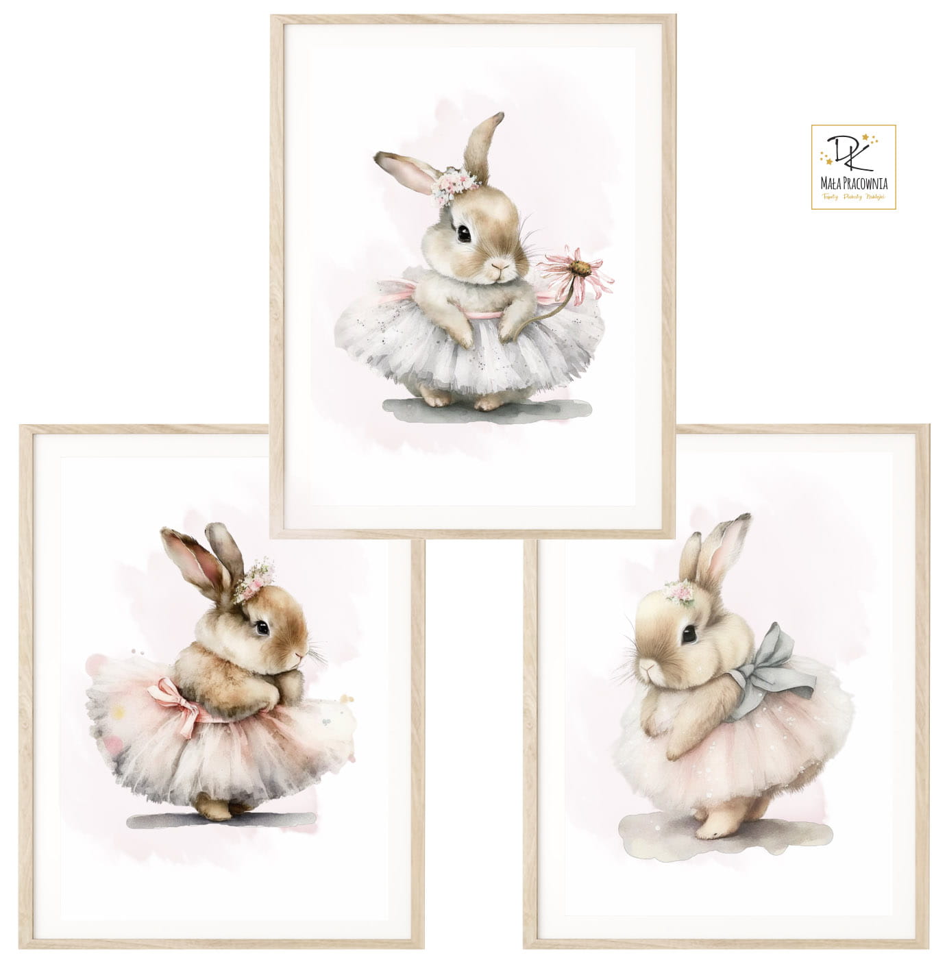 Zestaw 3 plakaty Króliczki, zajączki balet Tutu, kwiaty Nr.1