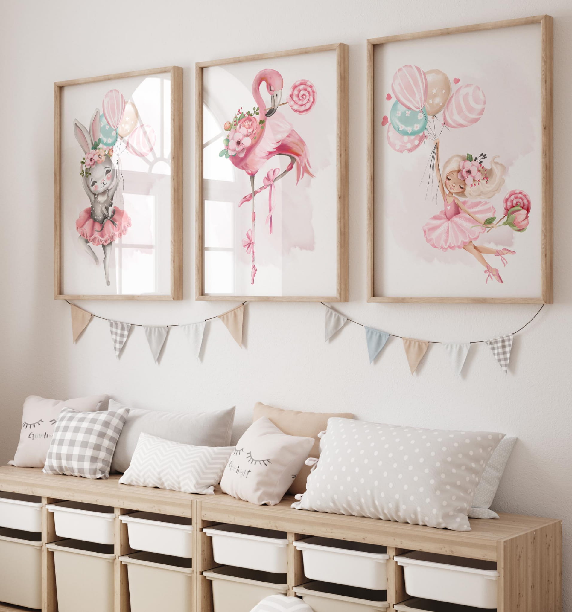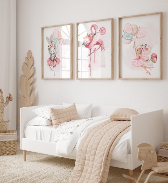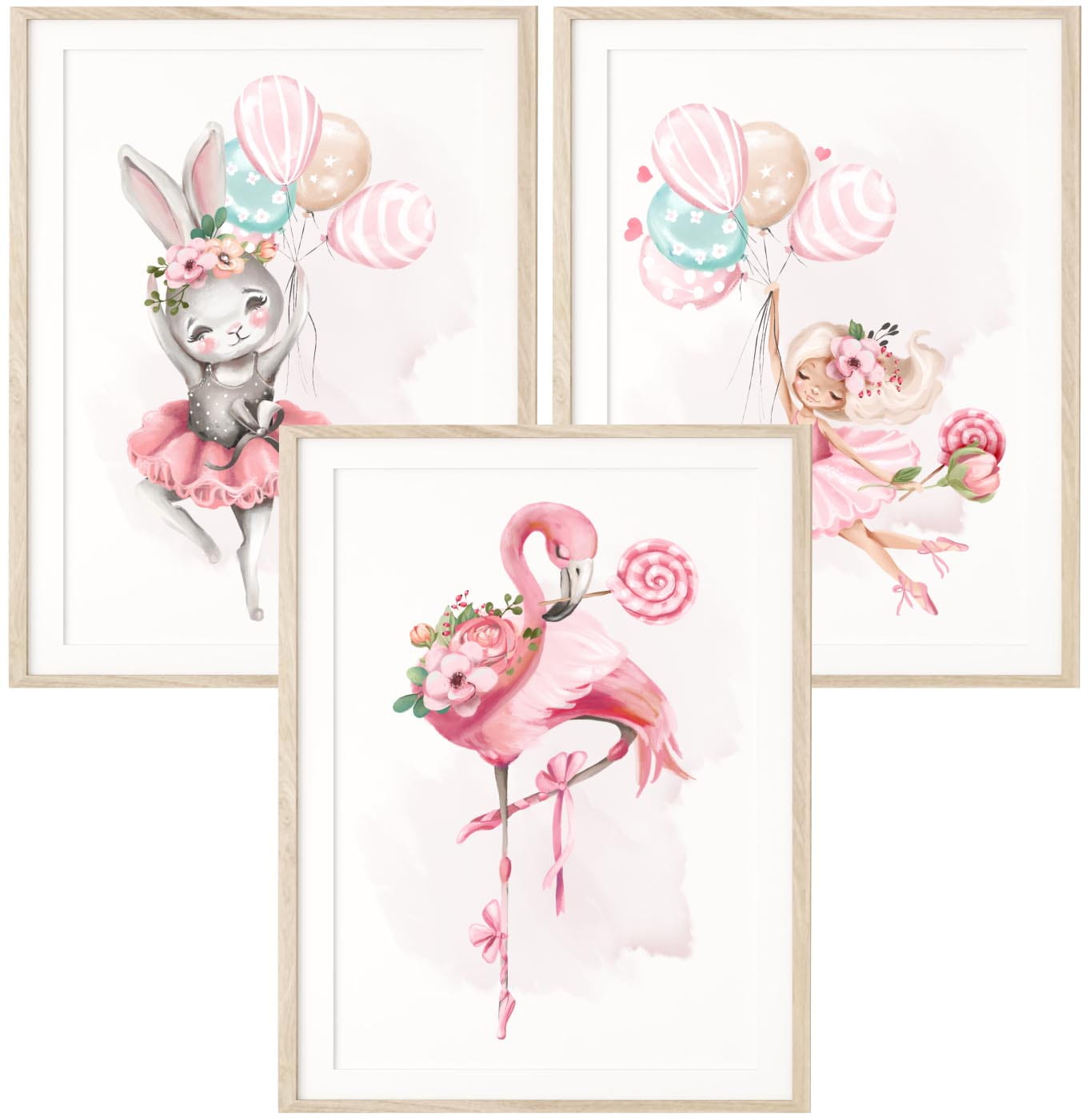 Zestaw 3 plakaty flaming, króliczek z balonikami - Kolekcja balet Nr.2