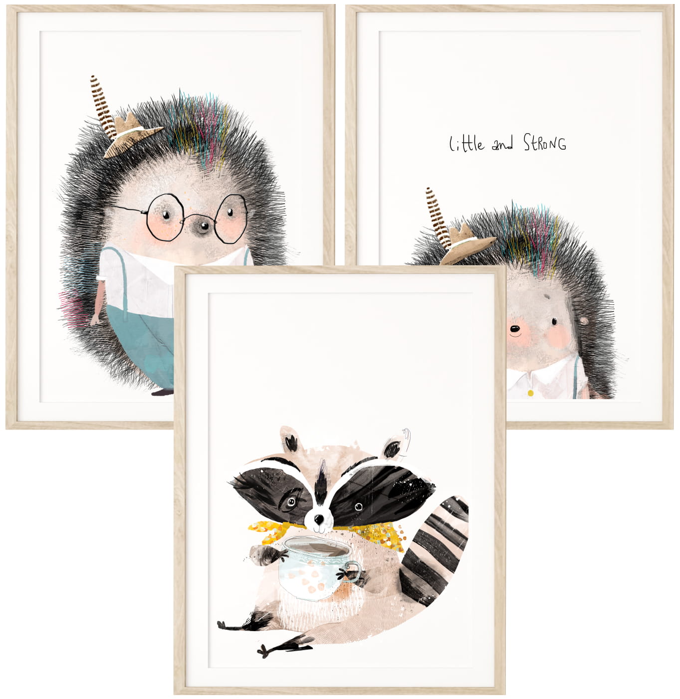 Zestaw 3 plakaty jeże szop z herbatką DK48
