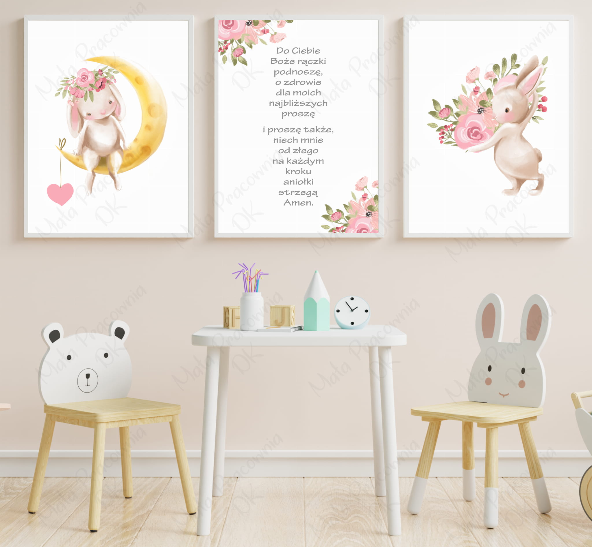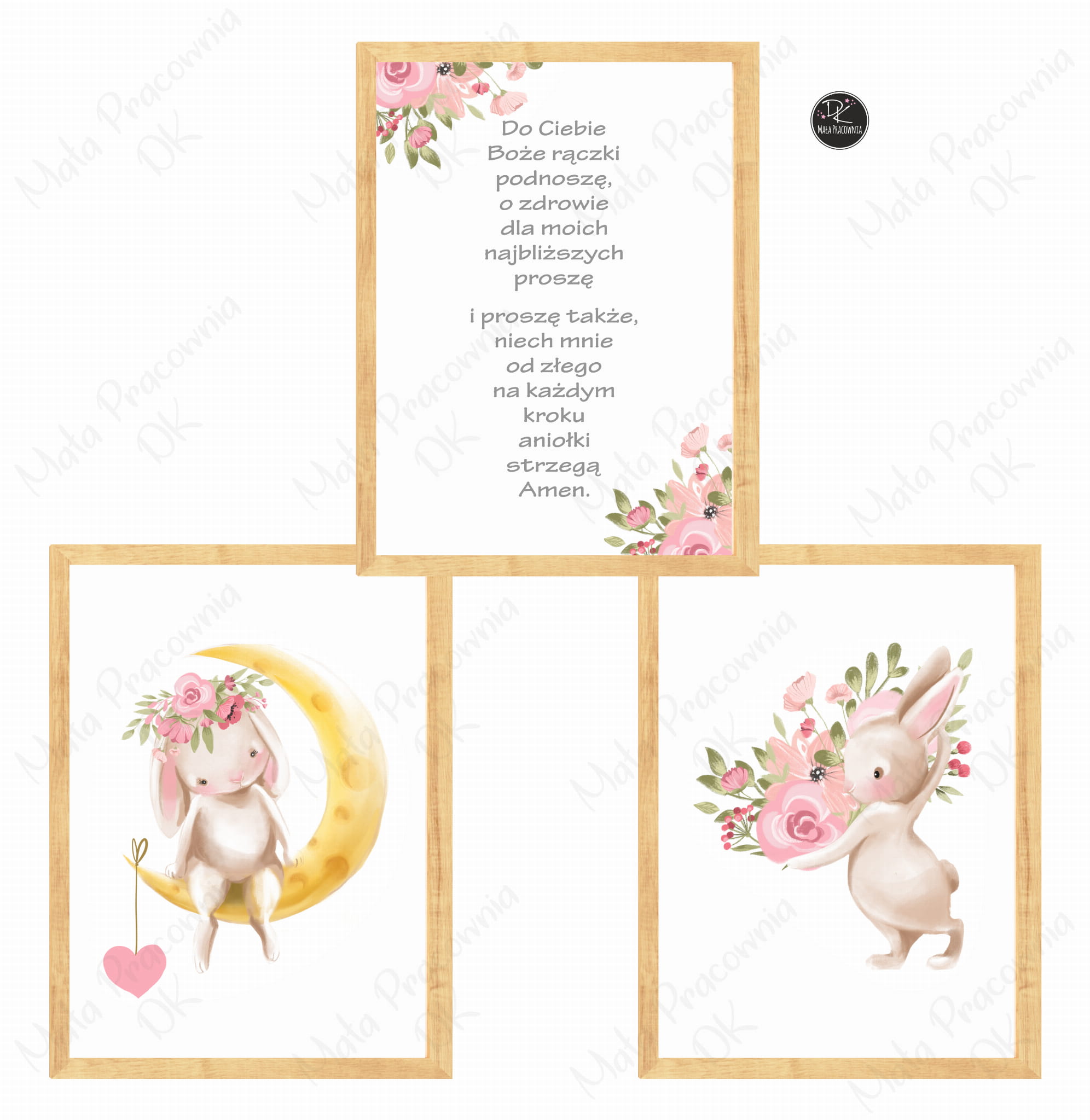 Zestaw 3 plakaty króliczek na księżycu, modlitwa