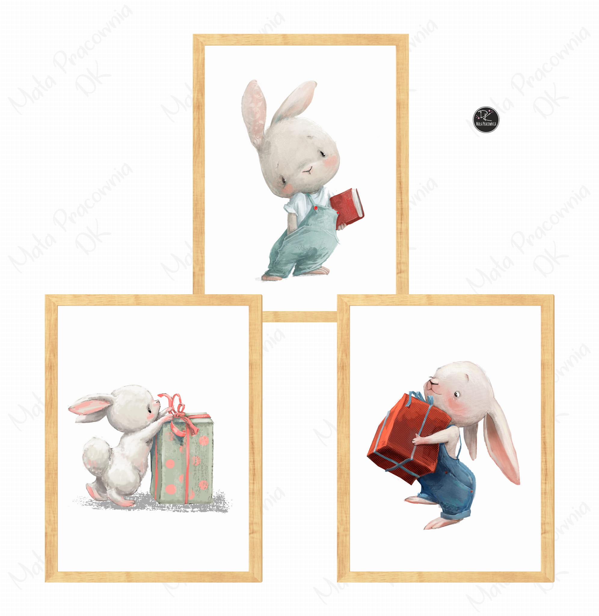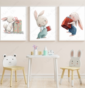 Zestaw 3 plakaty króliczki z prezentami